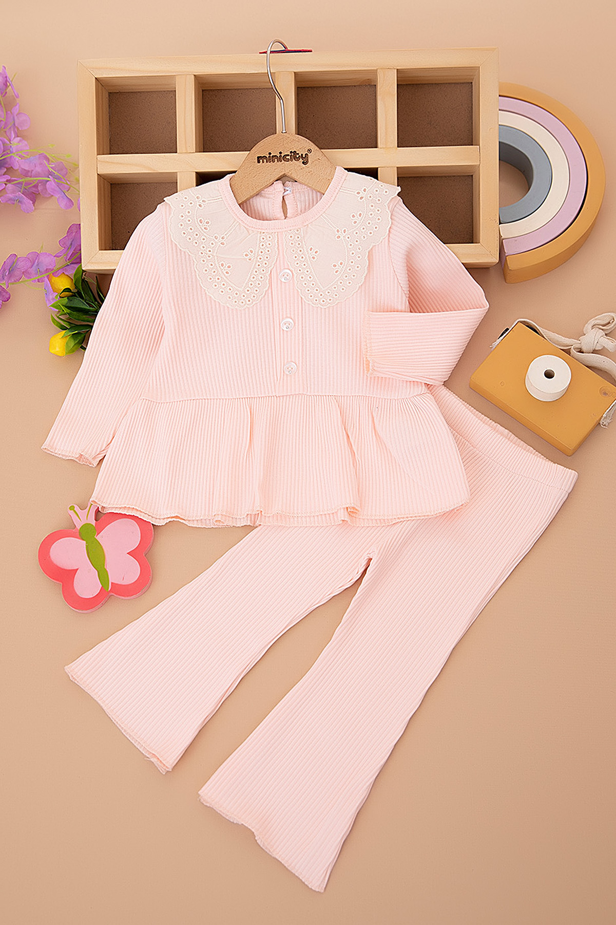 Kız Bebek Yakası Fistolu Fitilli Takım - 1093 (6-24 Ay)