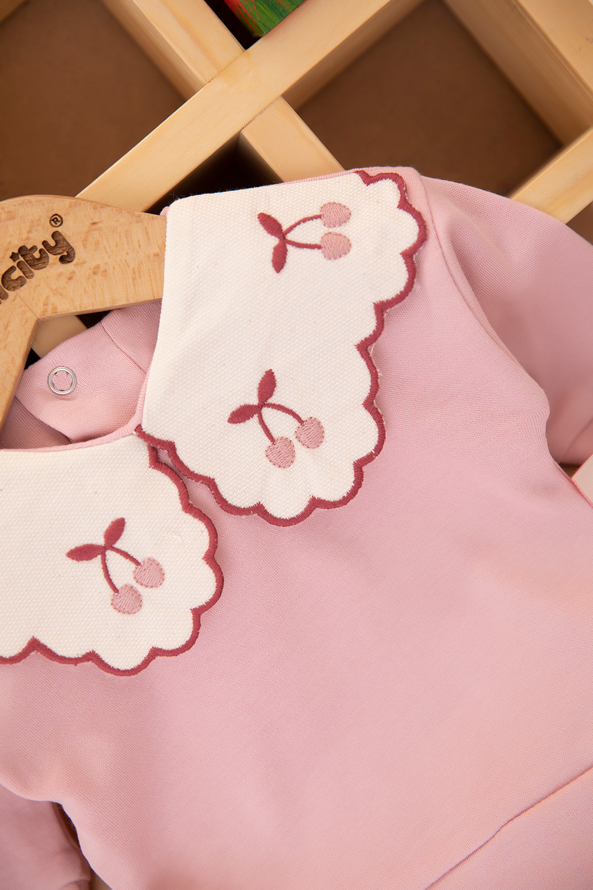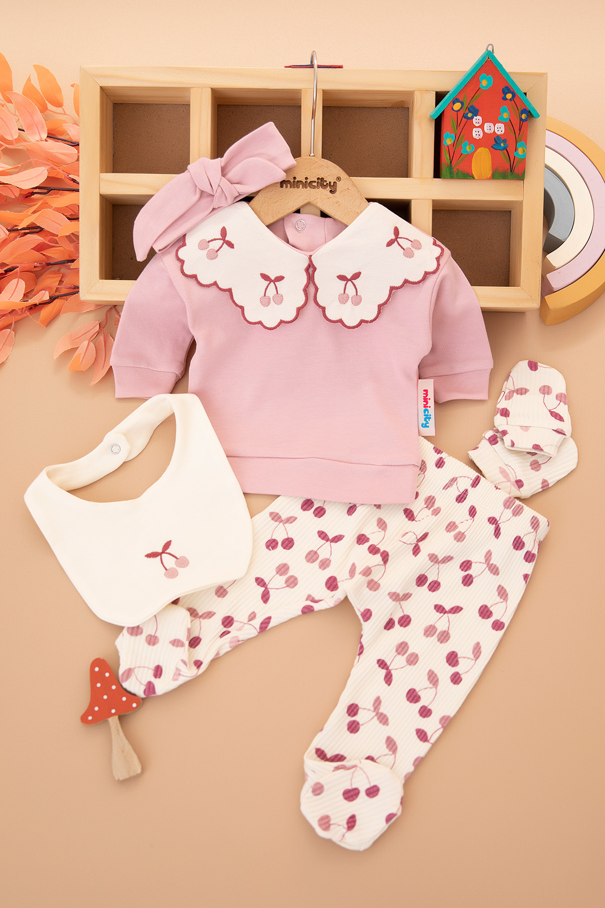 Kız Bebek Yakası Kiraz Nakışlı 5`Li Zıbın Seti - 52723 (0-3 Ay)