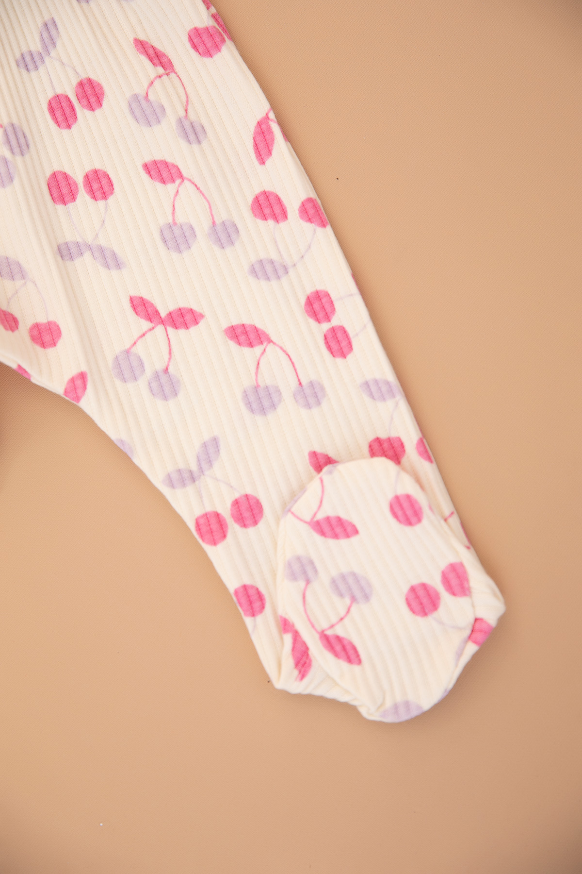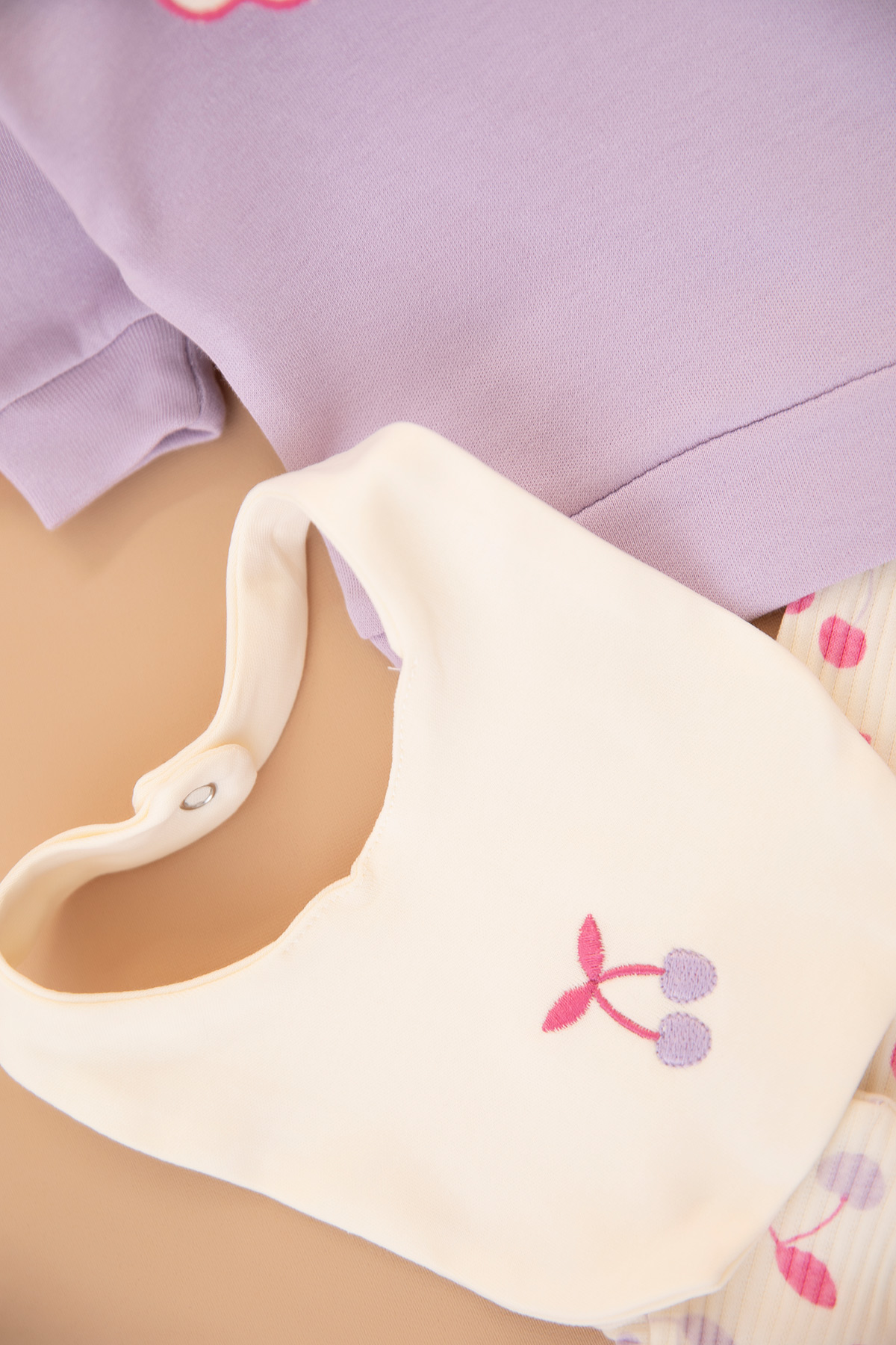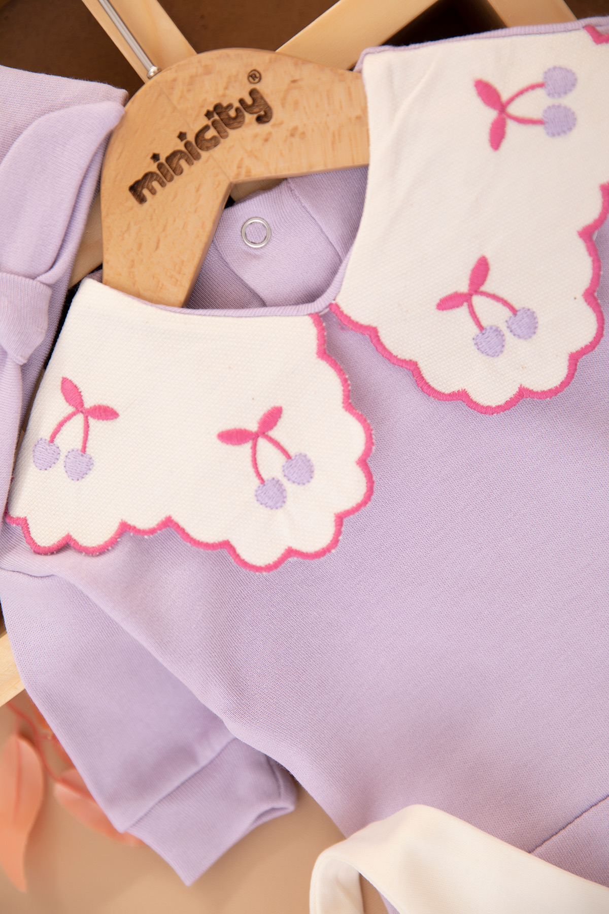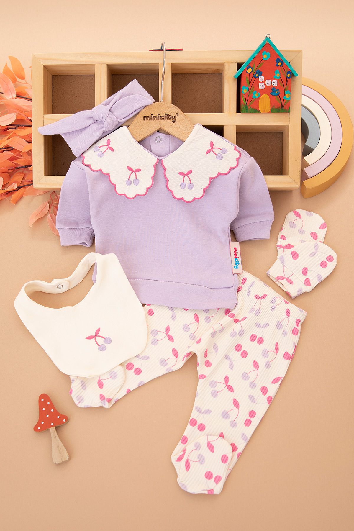 Kız Bebek Yakası Kiraz Nakışlı 5`Li Zıbın Seti - 52723 (0-3 Ay)