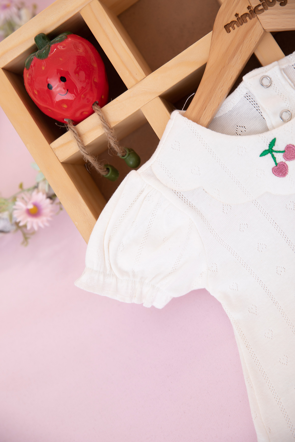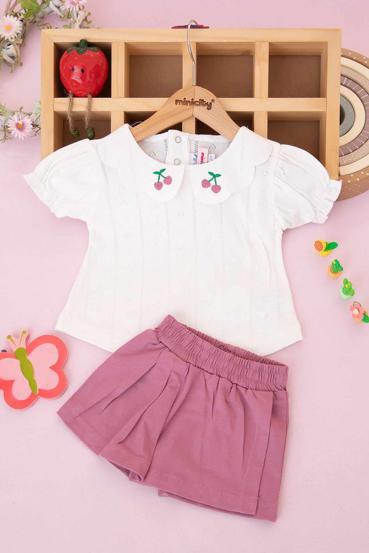 Kız Bebek Yakası Kiraz Nakışlı Şortlu Takım - 26338 (9-24 Ay)