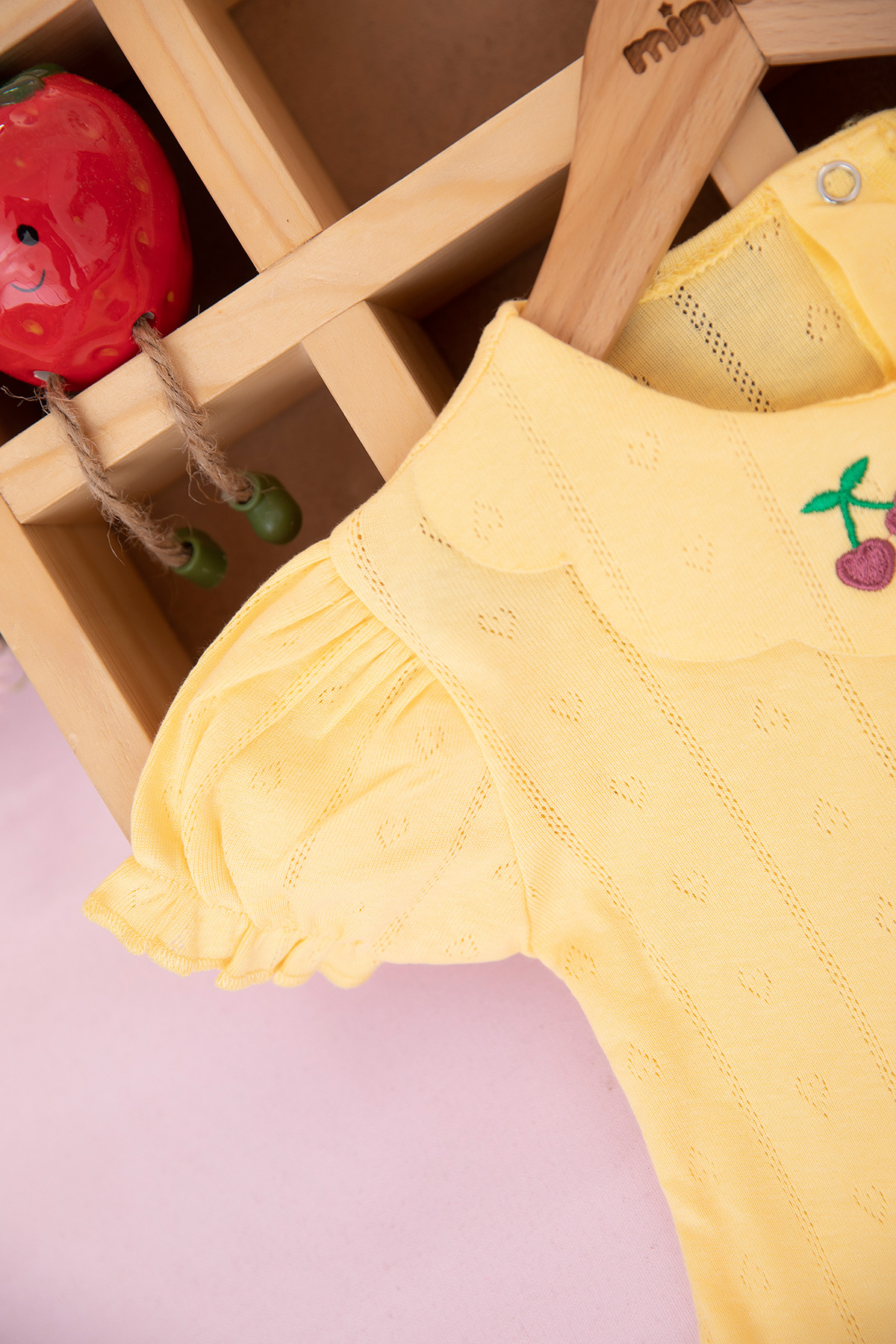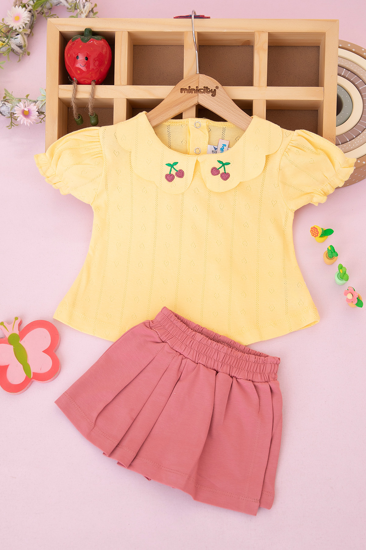 Kız Bebek Yakası Kiraz Nakışlı Şortlu Takım - 26338 (9-24 Ay)