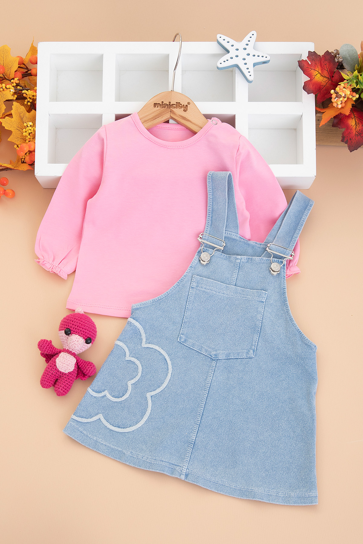 Kız Bebek Yanı Çiçekli Badili Kot Jile - 0344 (9-24 Ay)