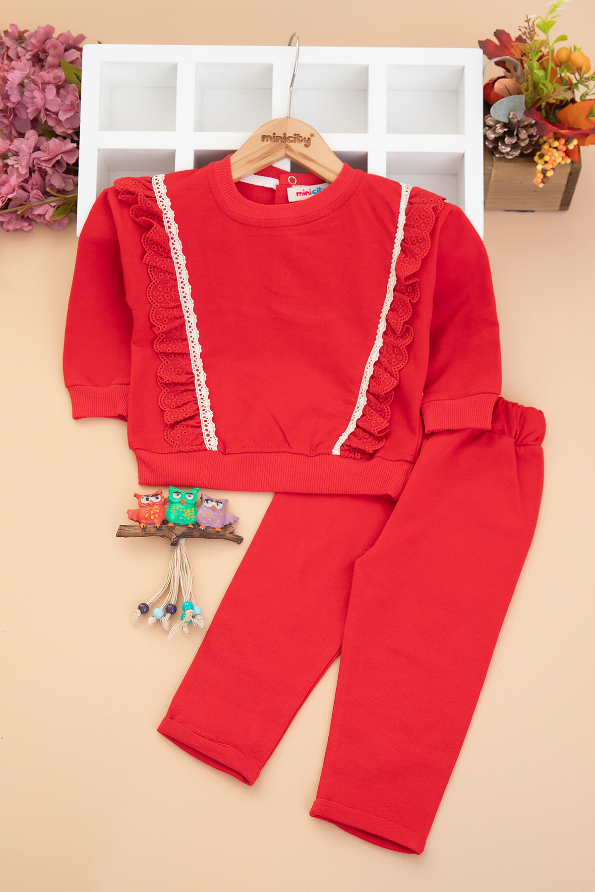 Kız Bebek Yanları Güpürlü Takım - 10389 (9-24 Ay)