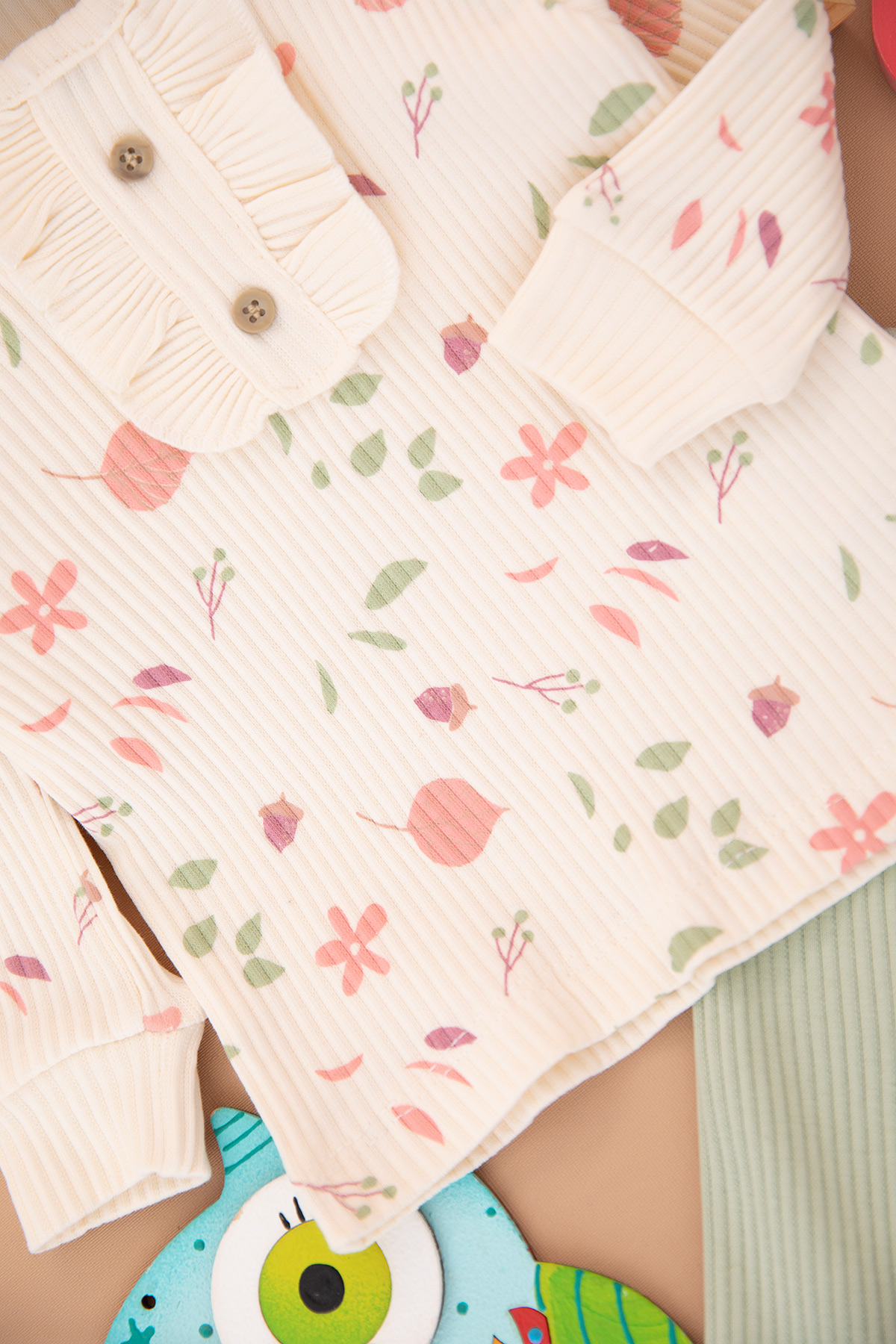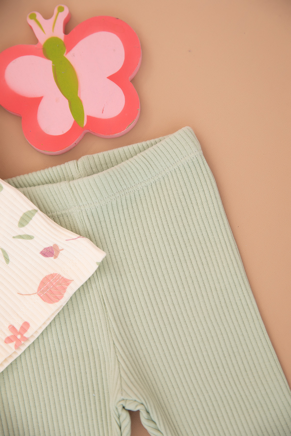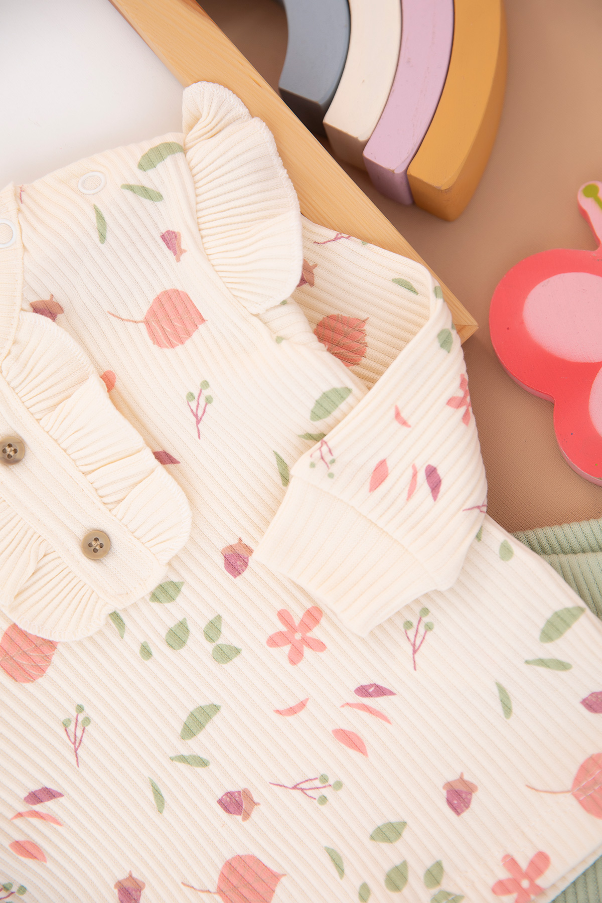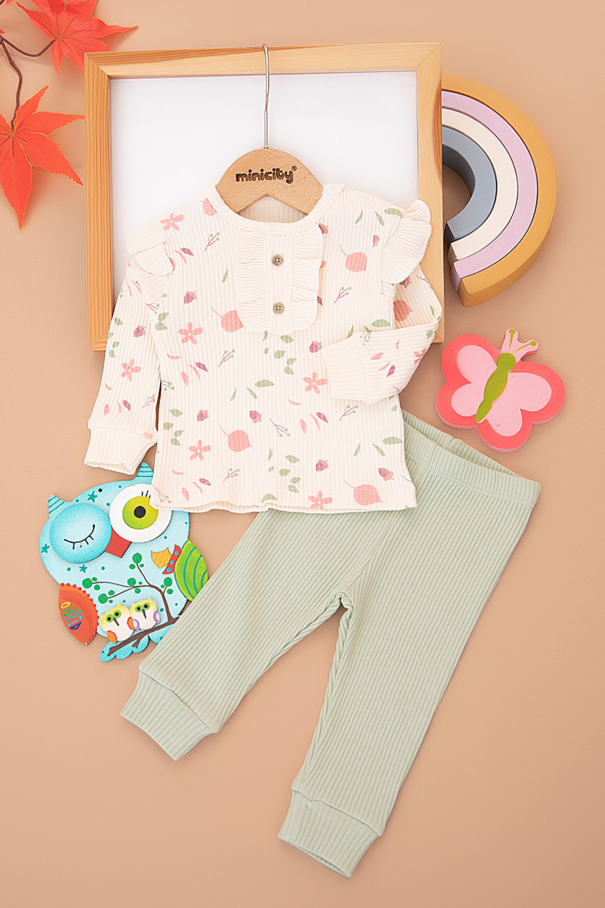 Kız Bebek Yaprak Baskılı Fitilli Takım - 1244 (3-12 Ay)