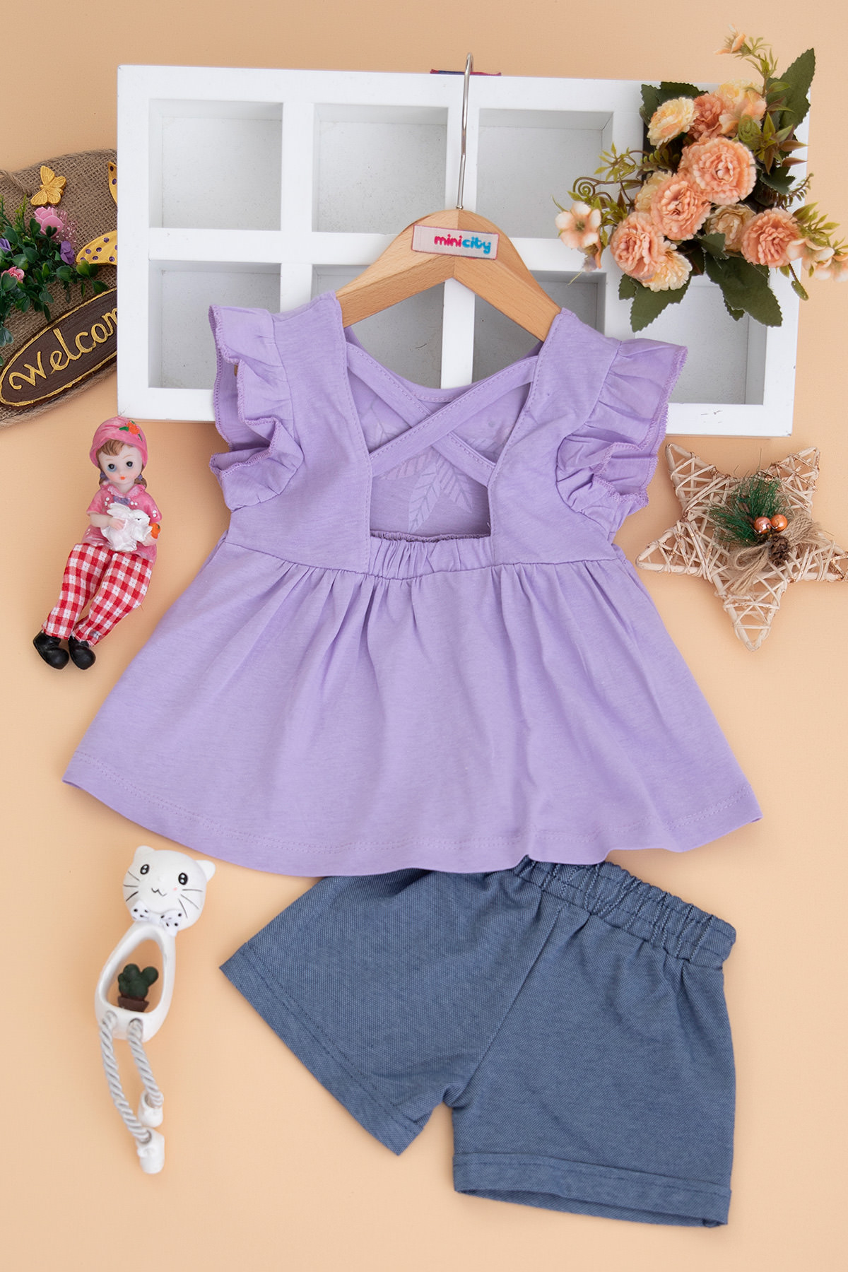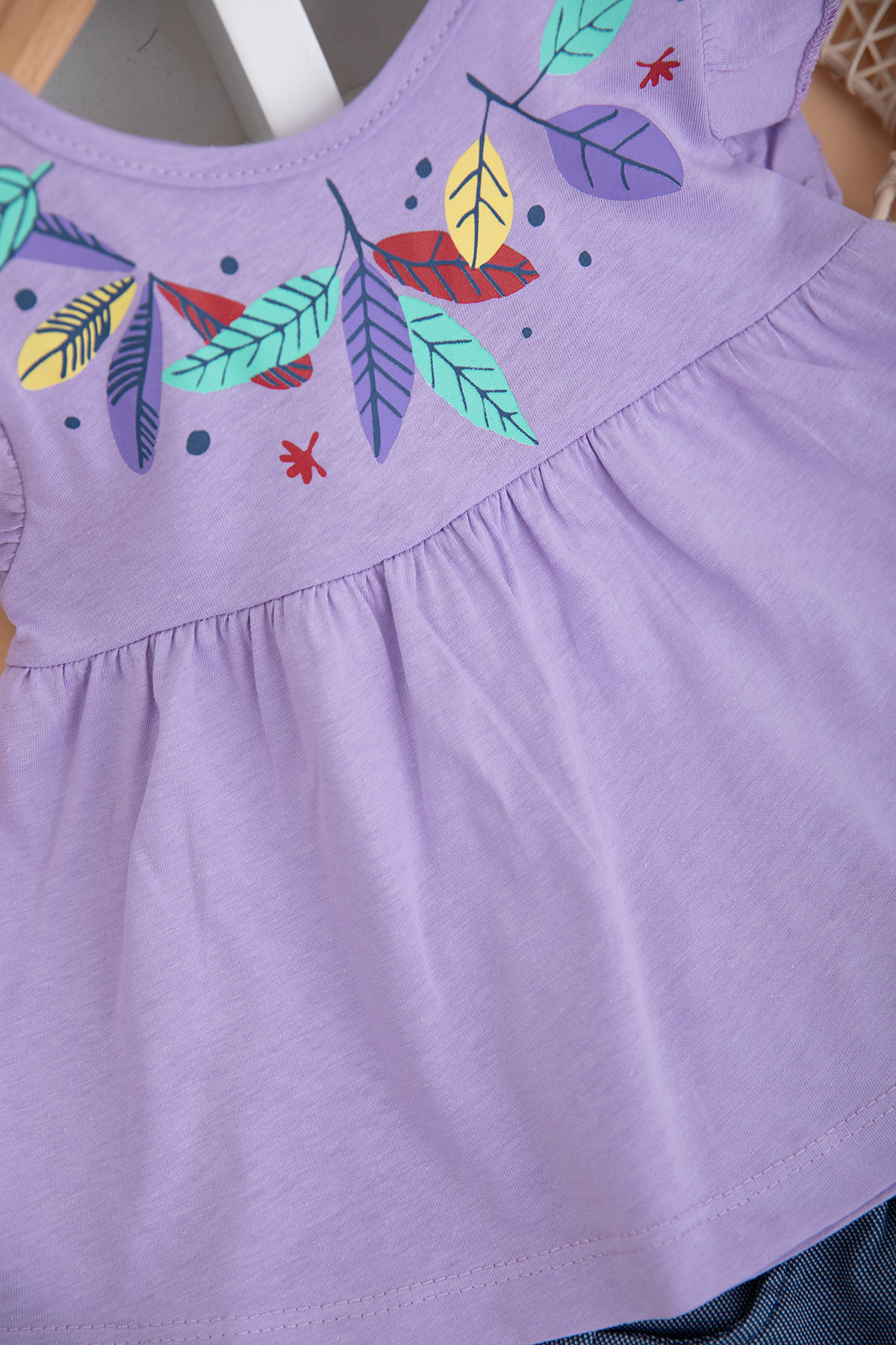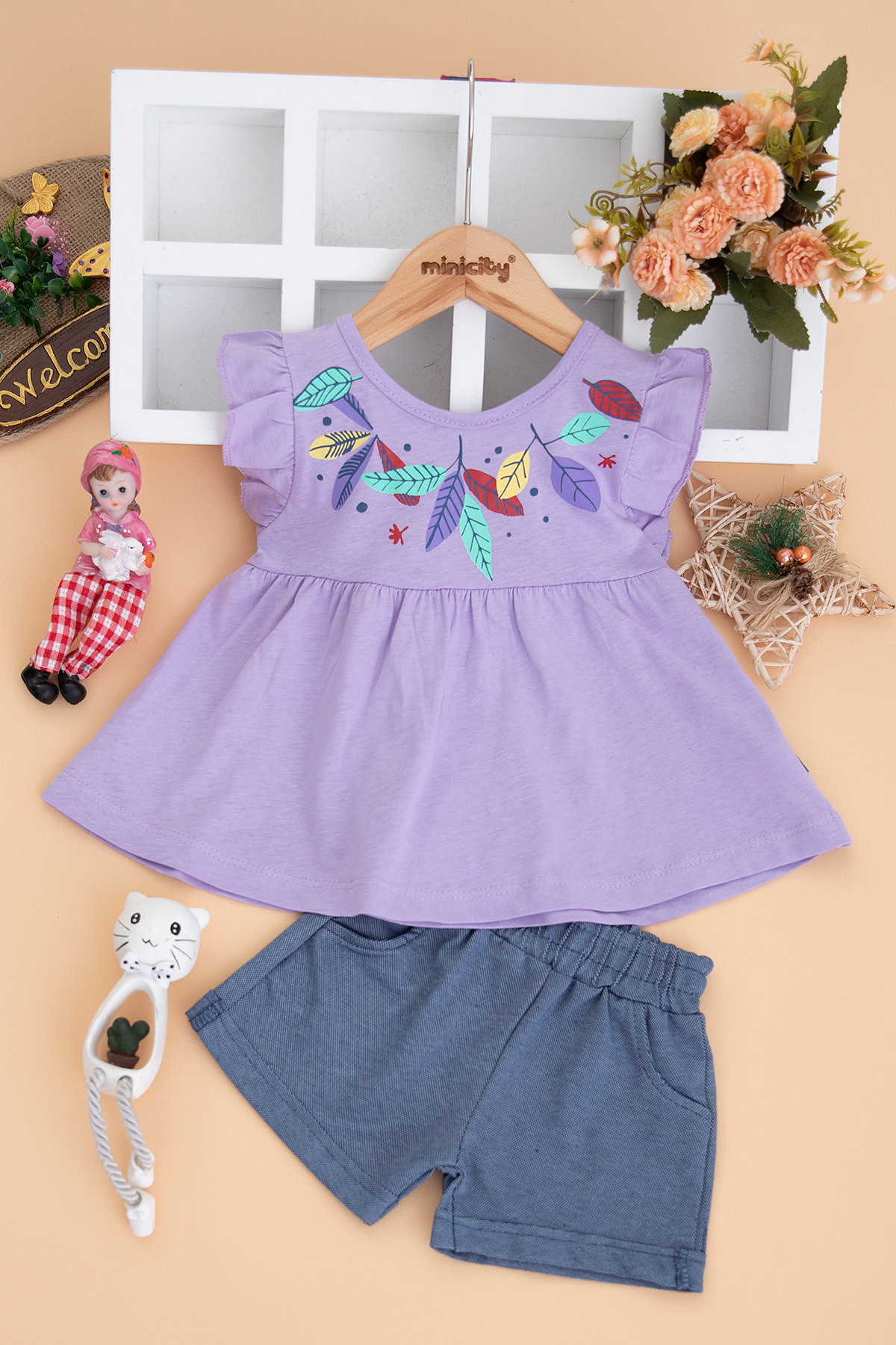 Kız Bebek Yaprak Baskılı Şortlu Takım - 23006 (9-24 Ay)