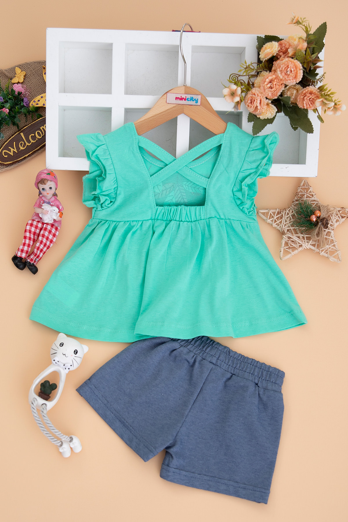 Kız Bebek Yaprak Baskılı Şortlu Takım - 23006 (9-24 Ay)