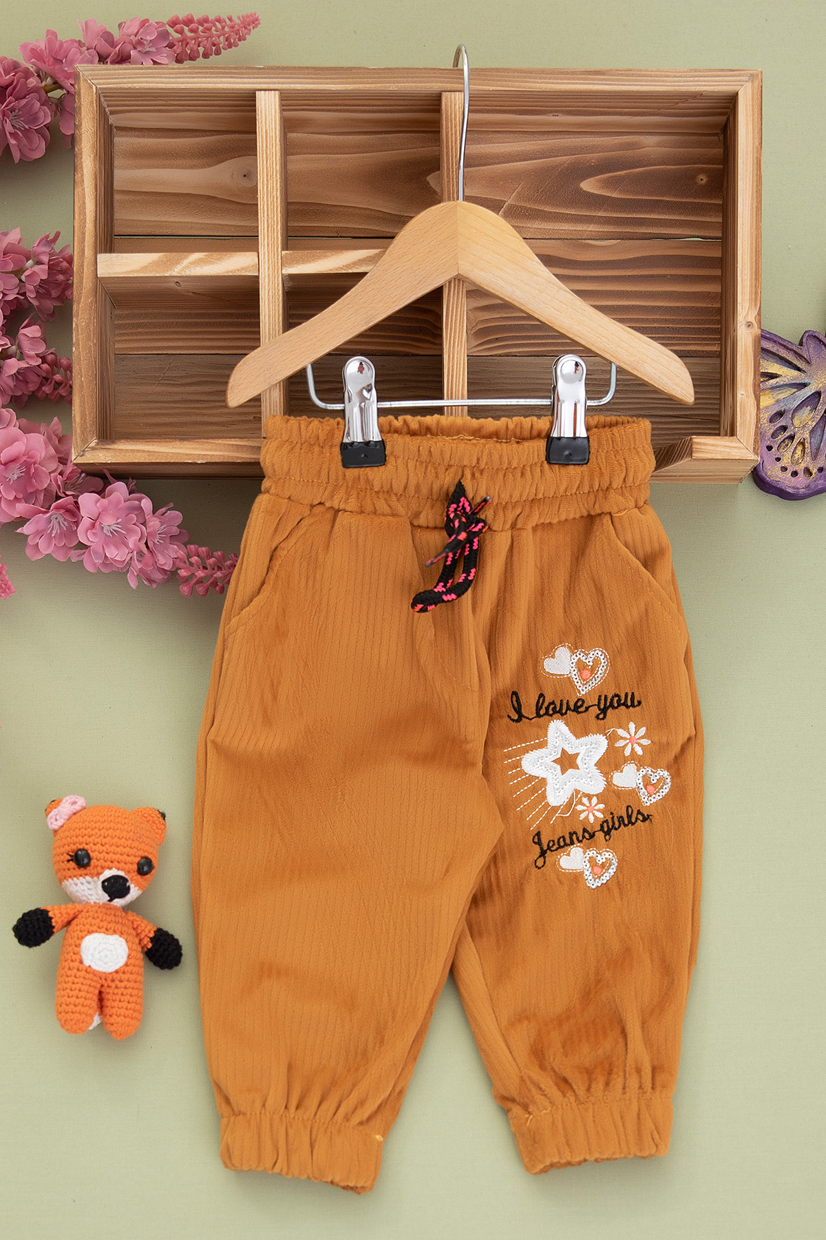 Kız Bebek Yıldız Kalp Kadife Pantolon - 26668 (6-24 Ay)