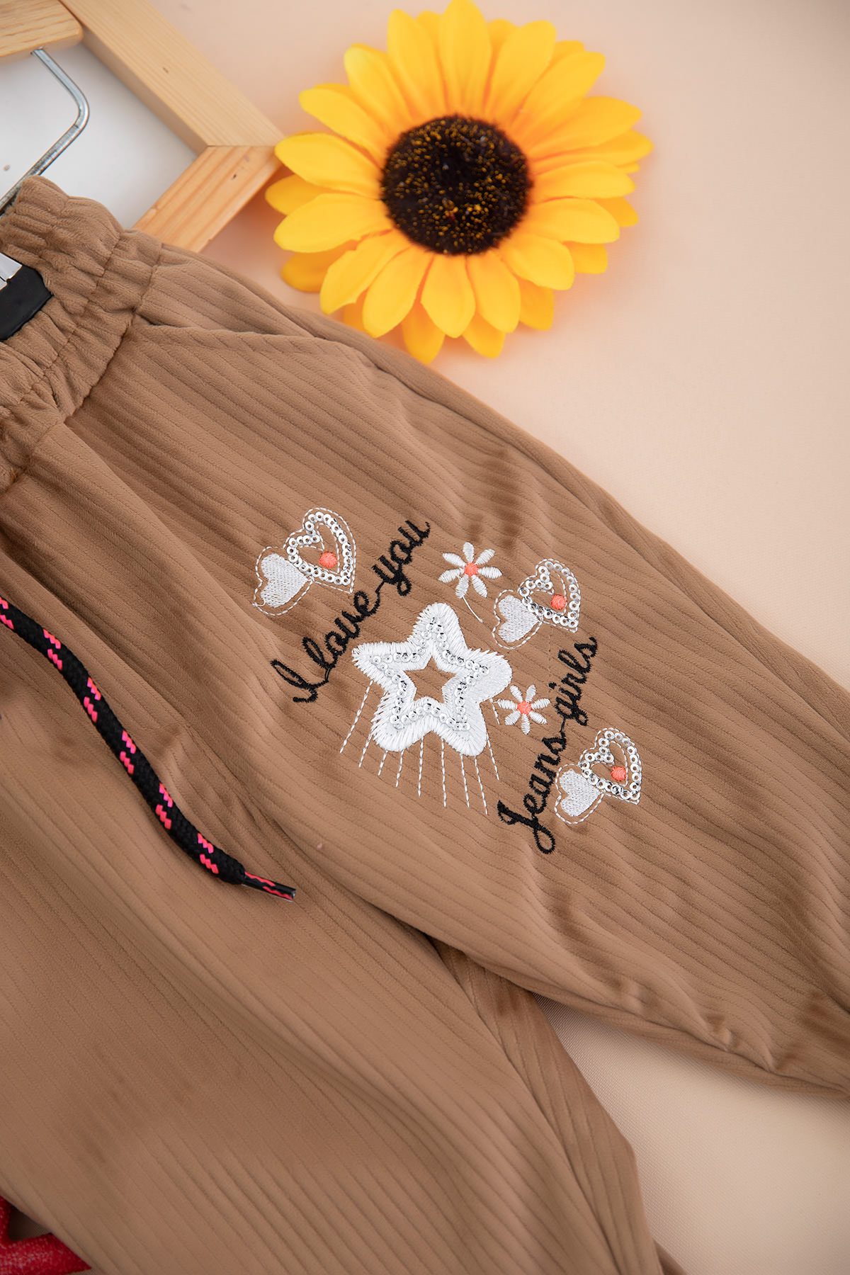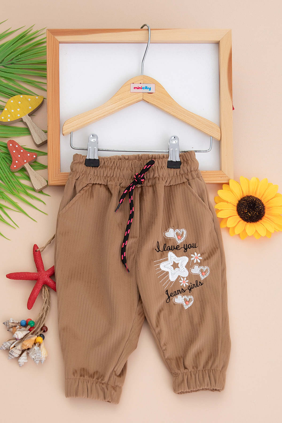 Kız Bebek Yıldız Kalp Kadife Pantolon - 26668 (6-24 Ay)