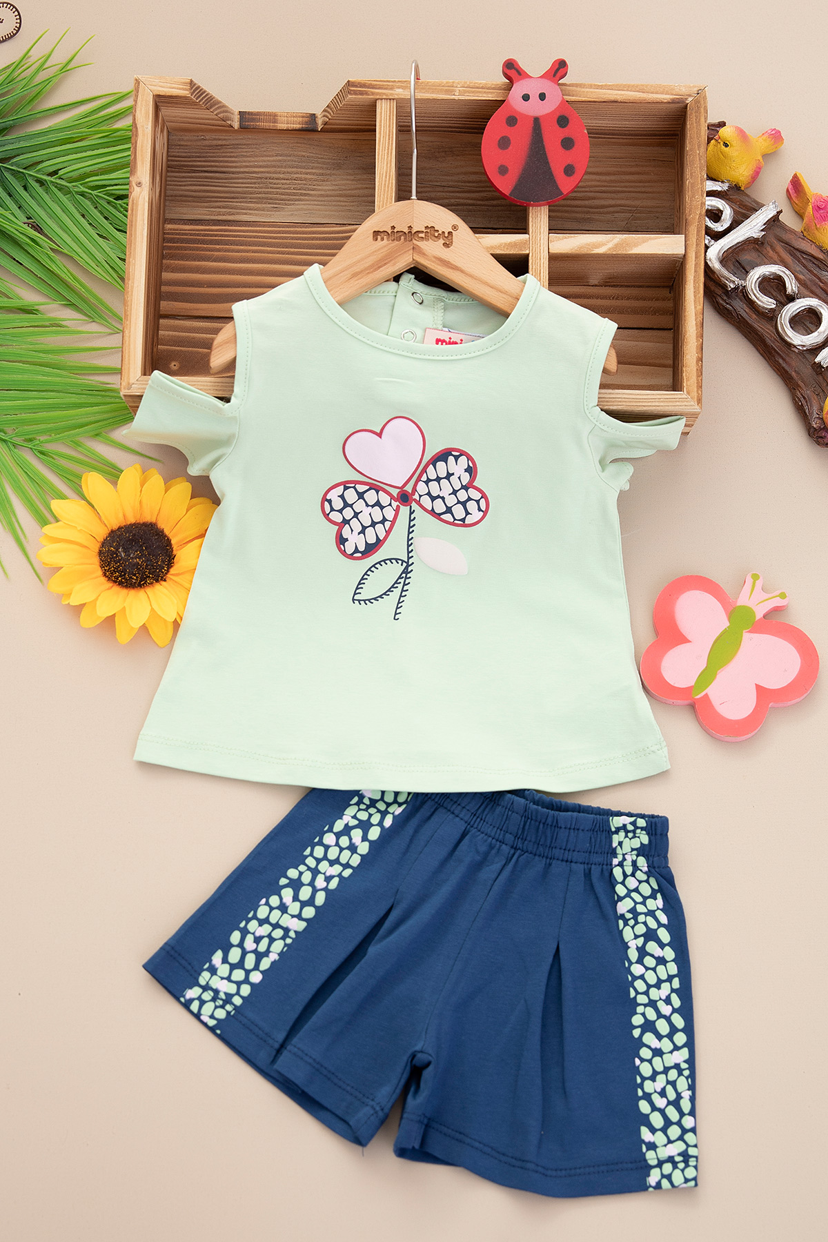 Kız Bebek Yonca Baskılı Şortlu Takım - 25399 (9-24 Ay)