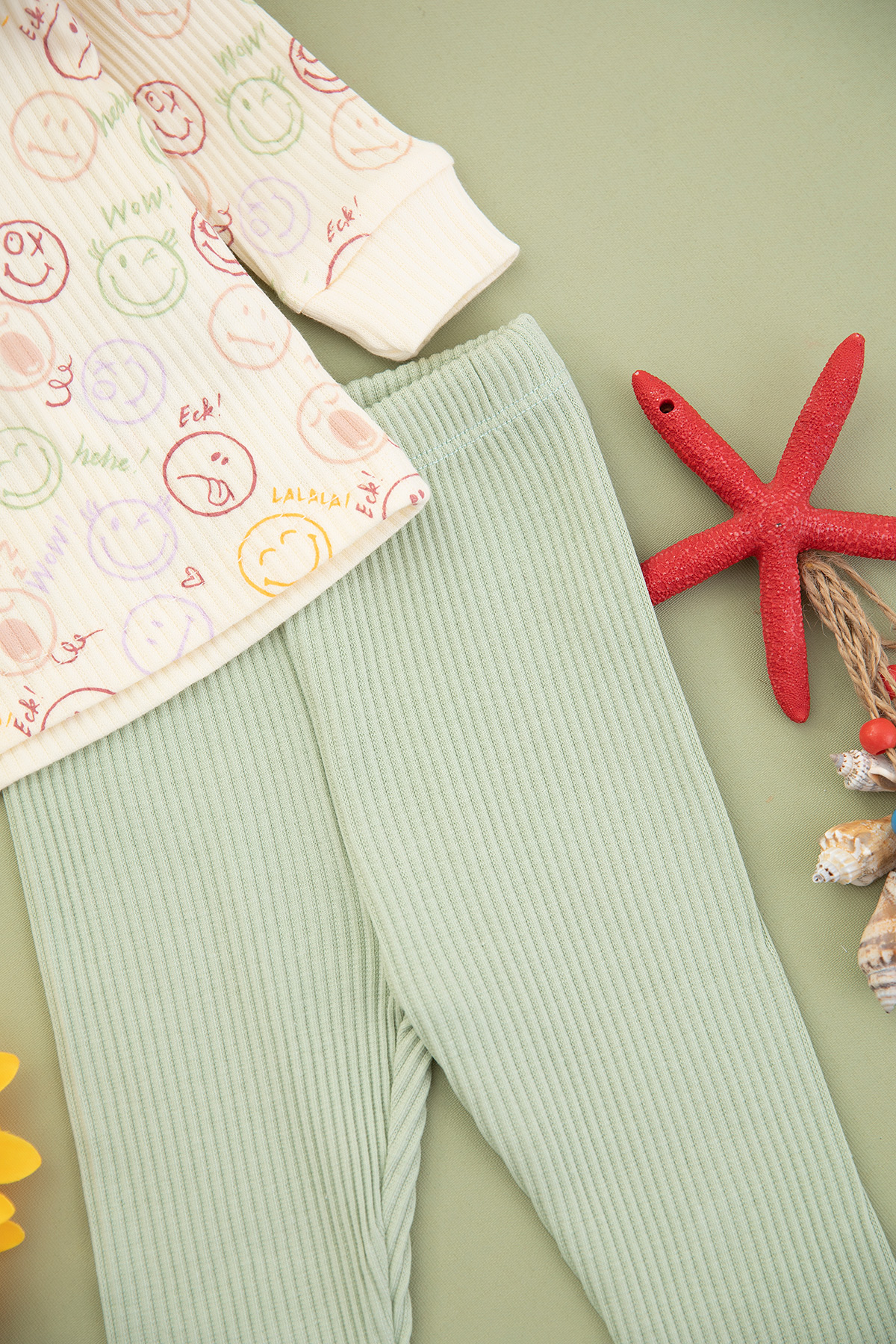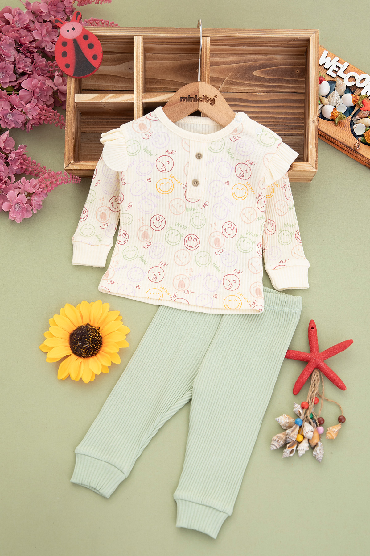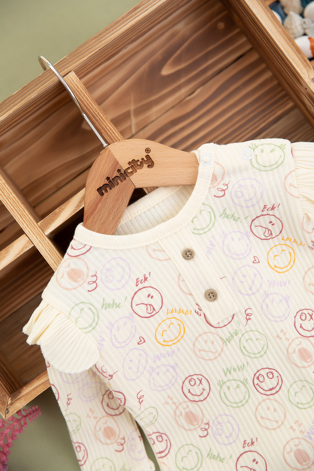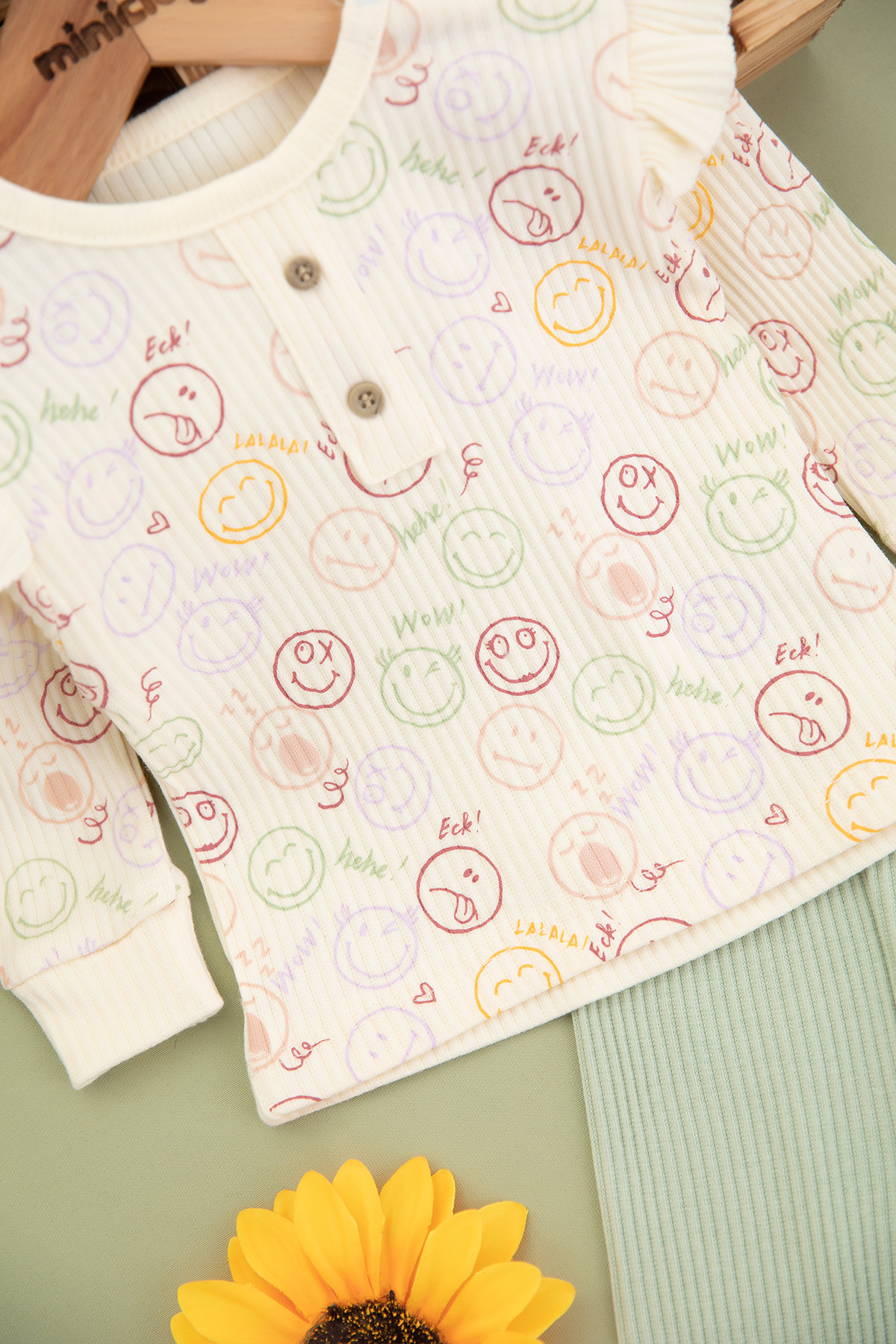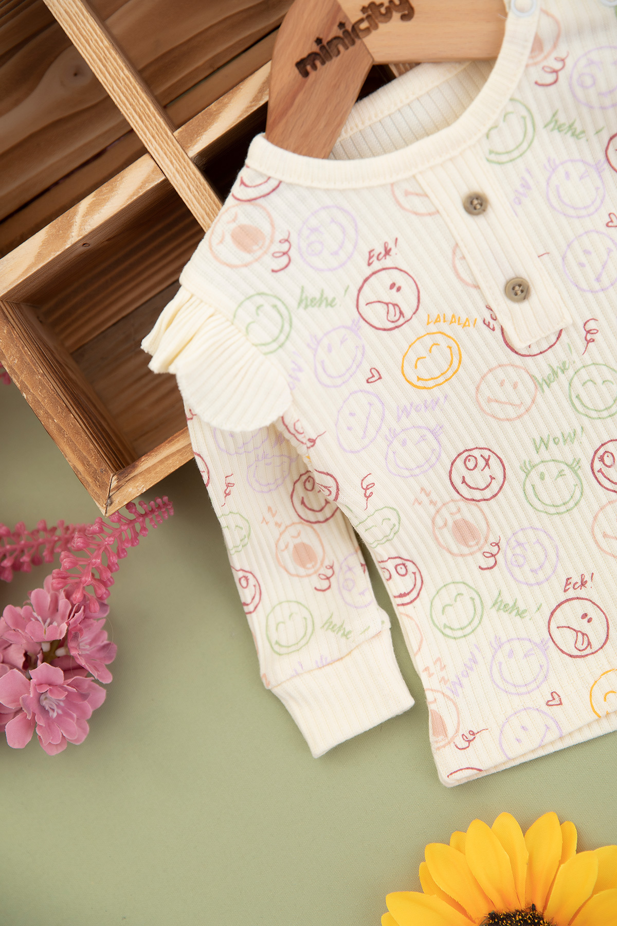 Kız Bebek Yüz Emojisi Baskılı Takım - 1278 (3-12 Ay)