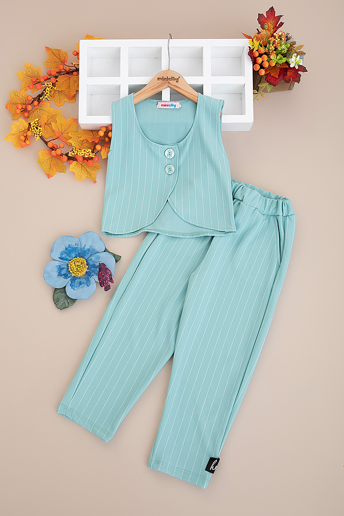 Kız Çocuk Akasya Yelek Pantolon Takım - 6635 (5-14 Yaş)