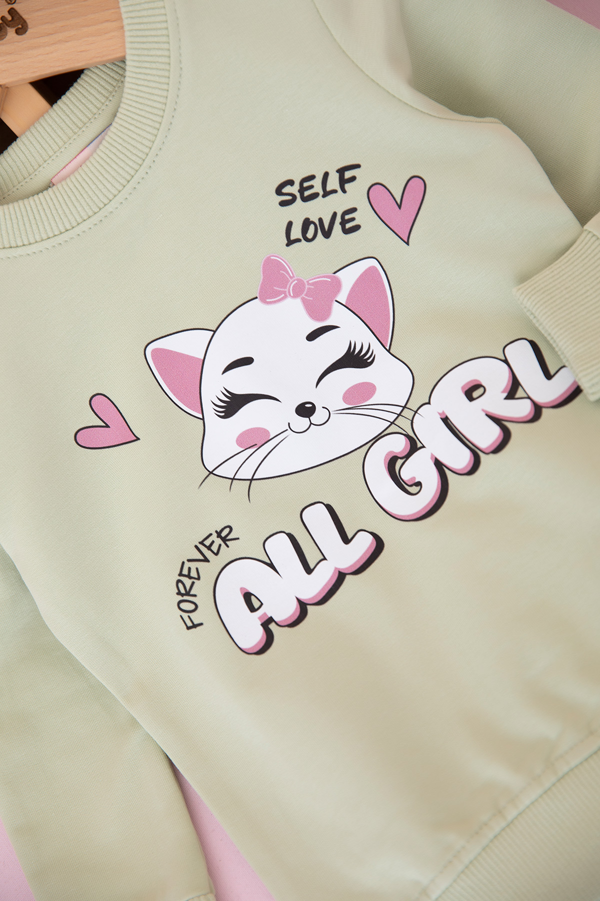 Kız Çocuk All Girl Kedi Baskılı Takım - 7764 (2-6 Yaş)