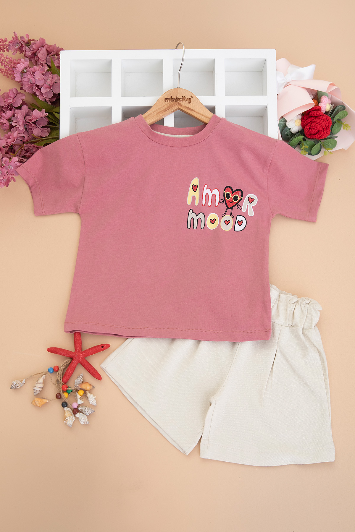 Kız Çocuk Amor Mood Baskılı Şortlu Takım - 26367 (3-6 Yaş)
