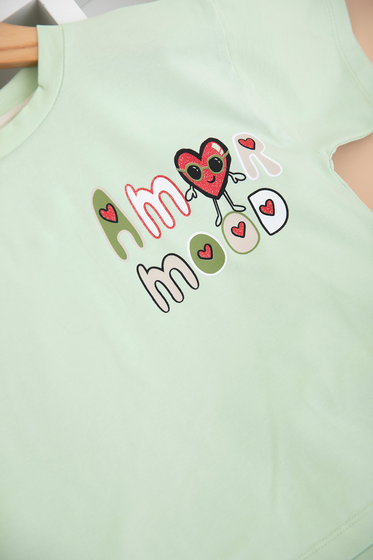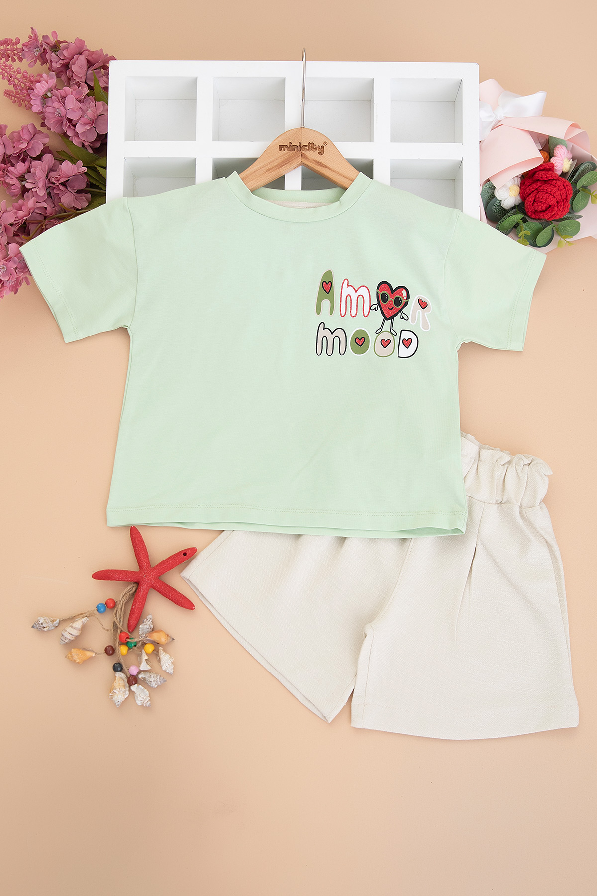 Kız Çocuk Amor Mood Baskılı Şortlu Takım - 26367 (3-6 Yaş)