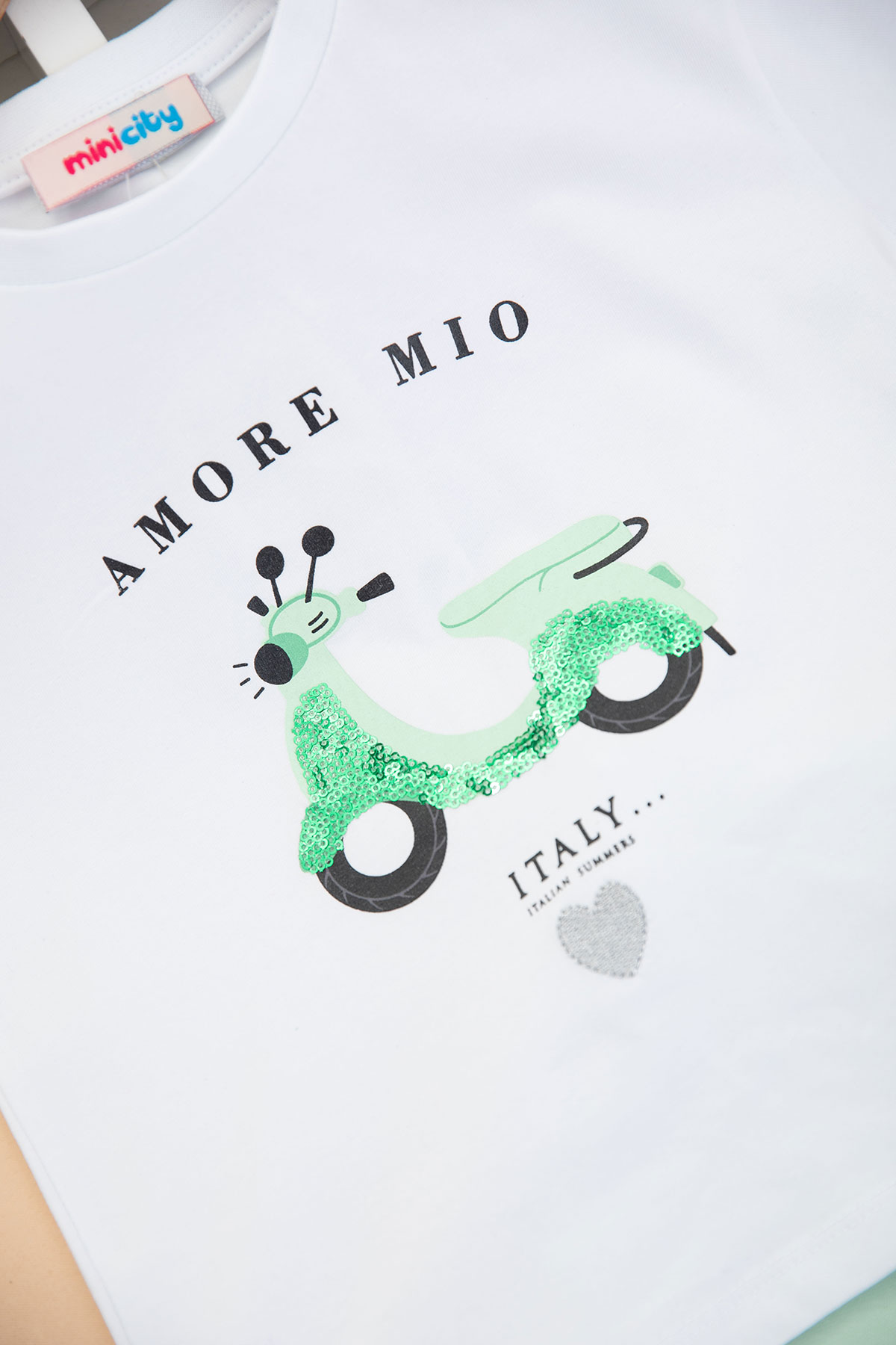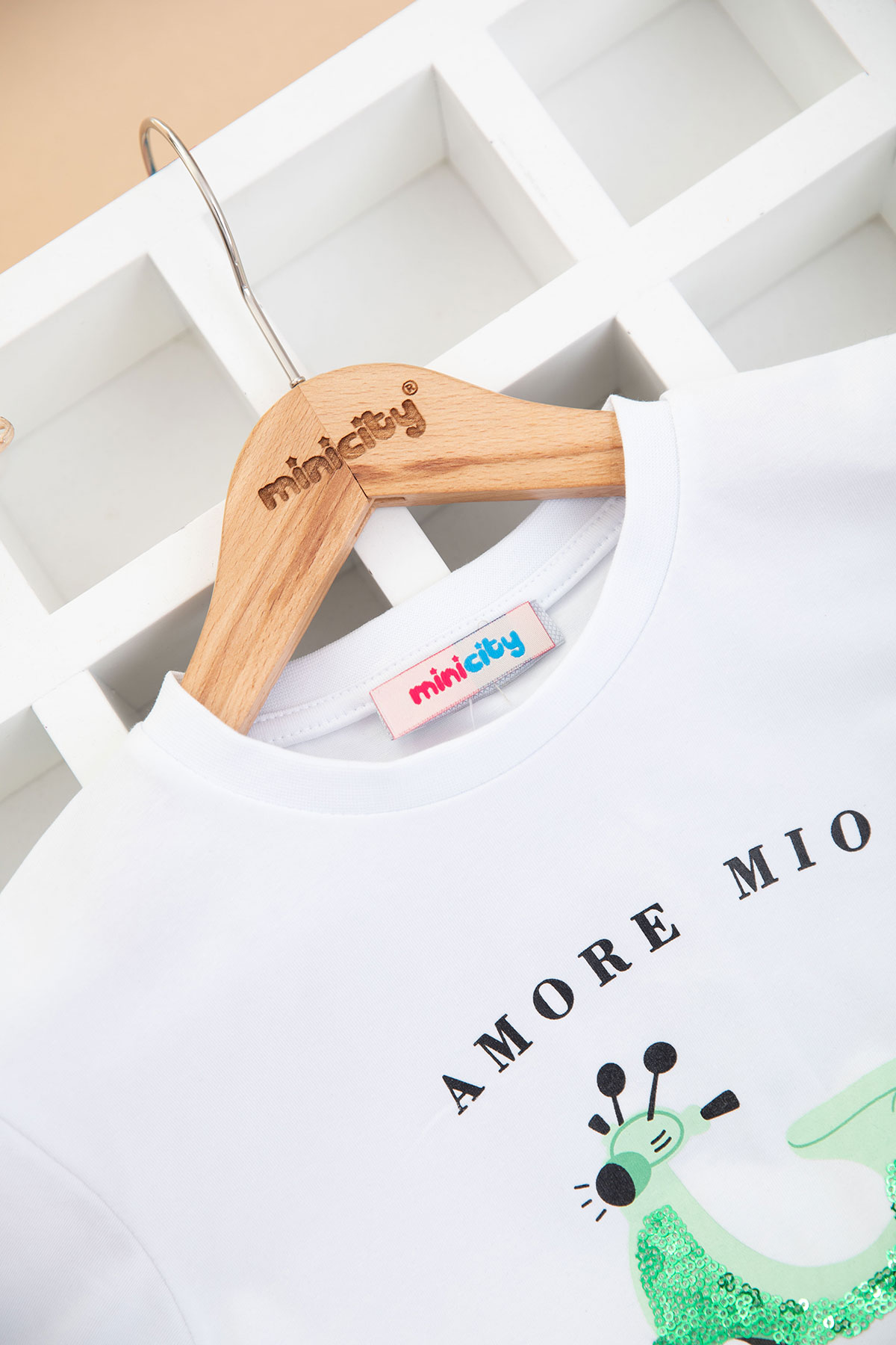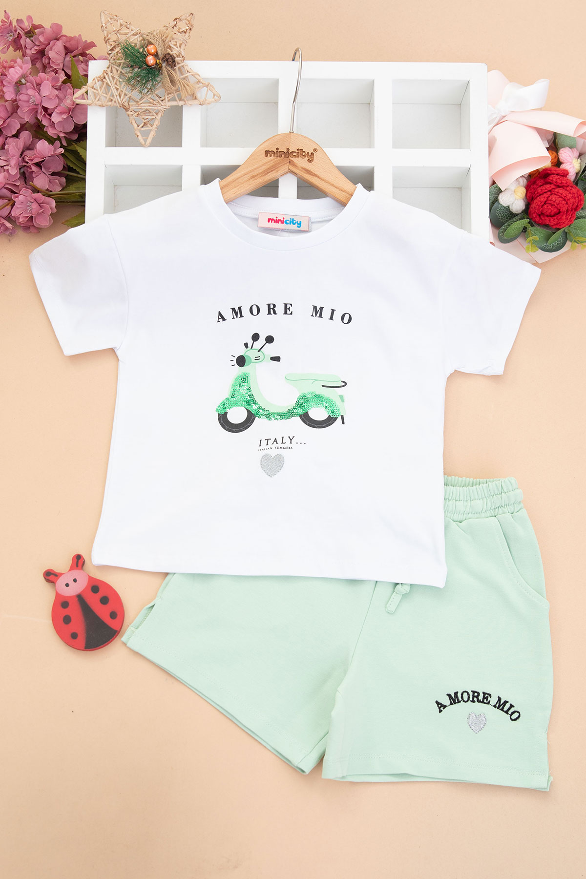 Kız Çocuk Amore Mıo Baskı Ve Nakışlı Şortlu Takım - 625725 (6-9 Yaş)