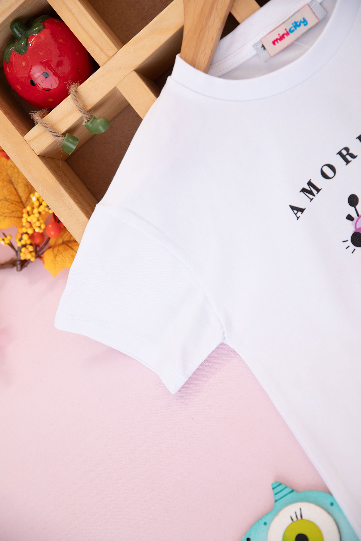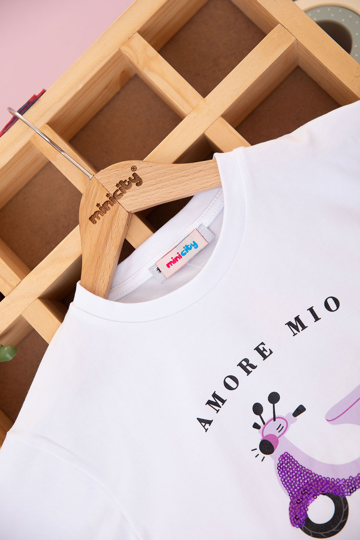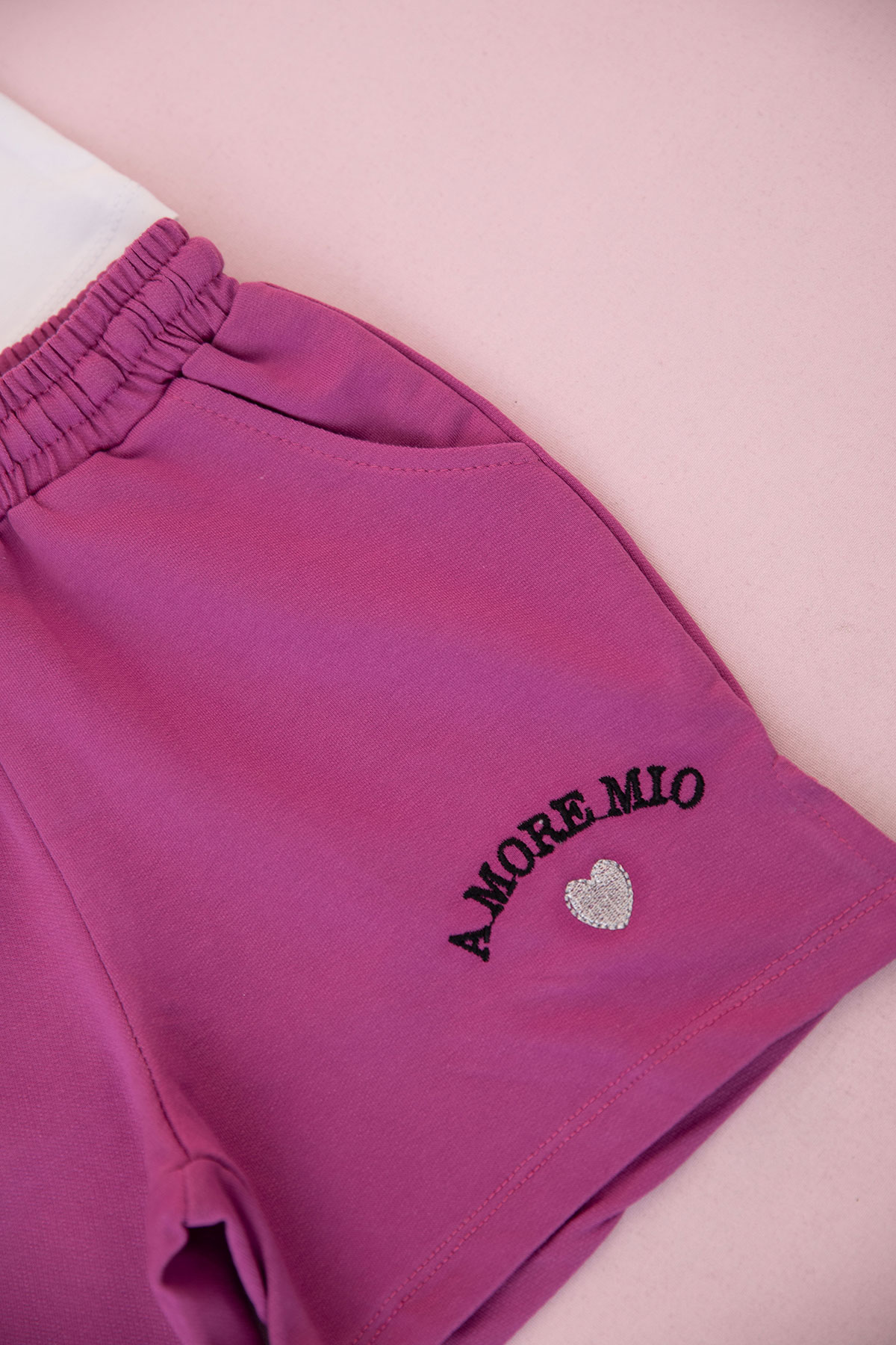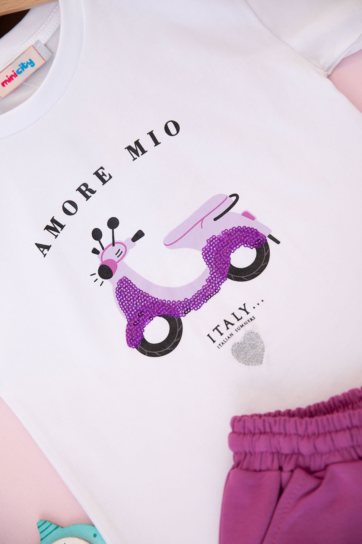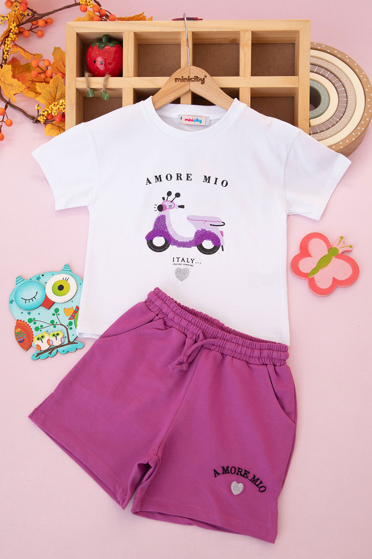 Kız Çocuk Amore Mıo Baskı Ve Nakışlı Şortlu Takım - 625725 (6-9 Yaş)
