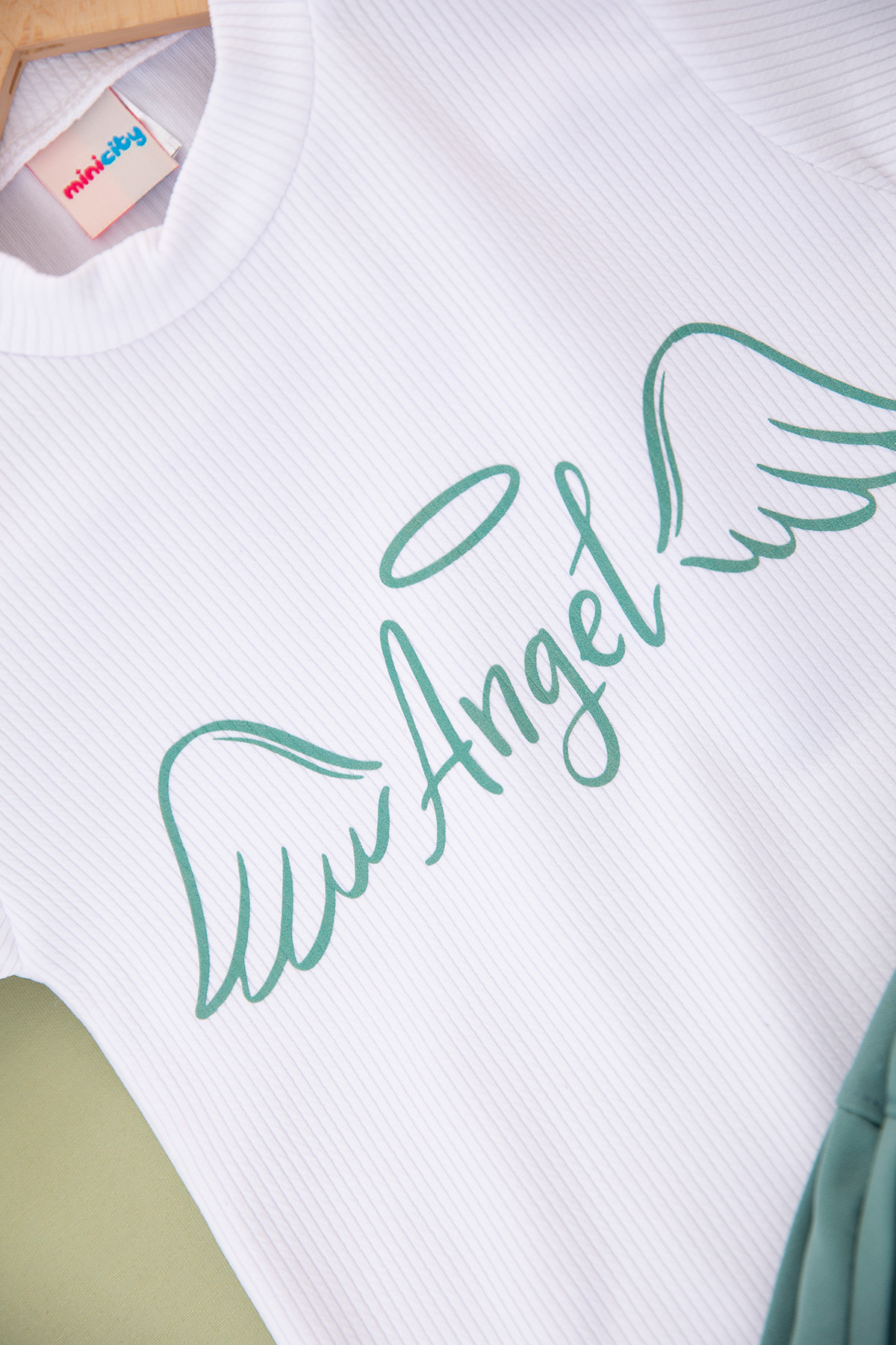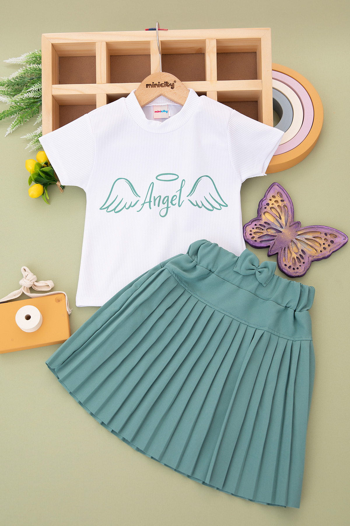 Kız Çocuk Angel Baskılı Piliseli Etekli Takım (3-7 Yaş)