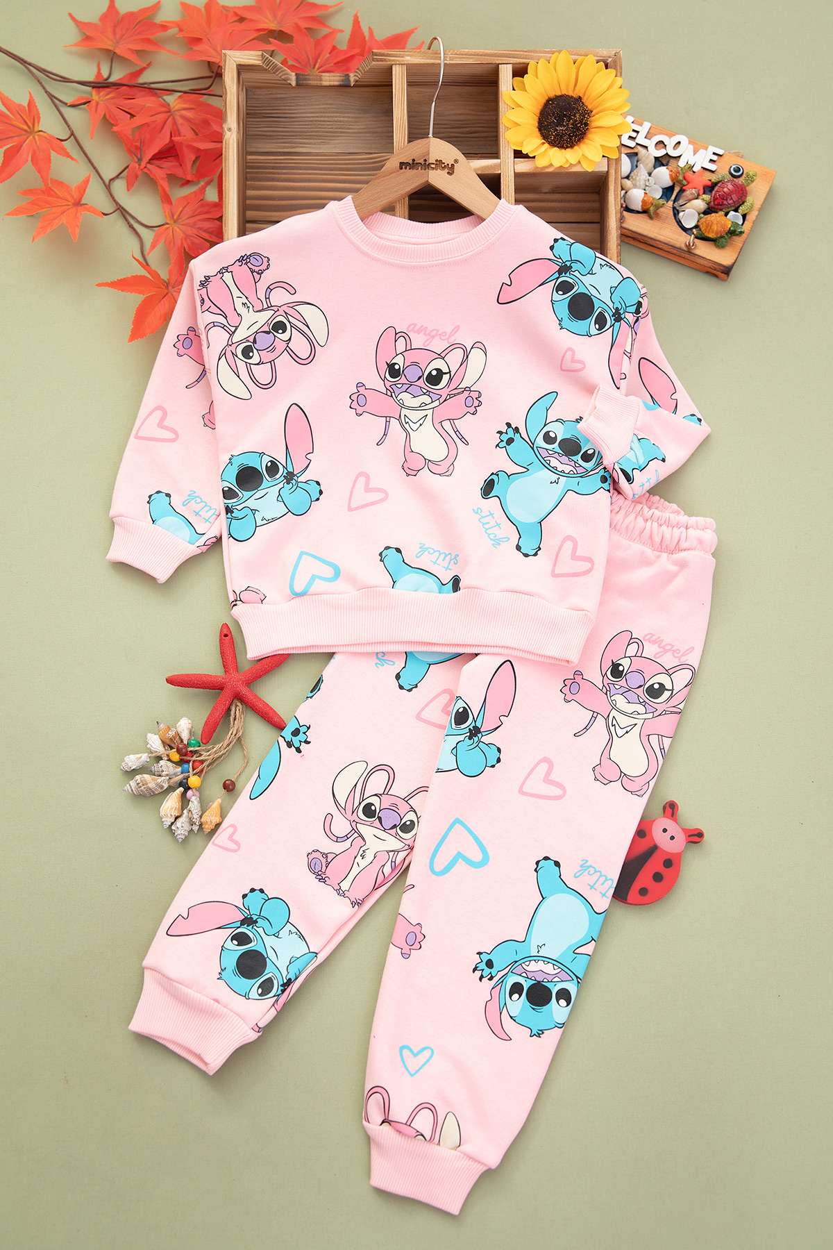 Kız Çocuk Angel Baskılı Üç İp Takım (4-10 Yaş)