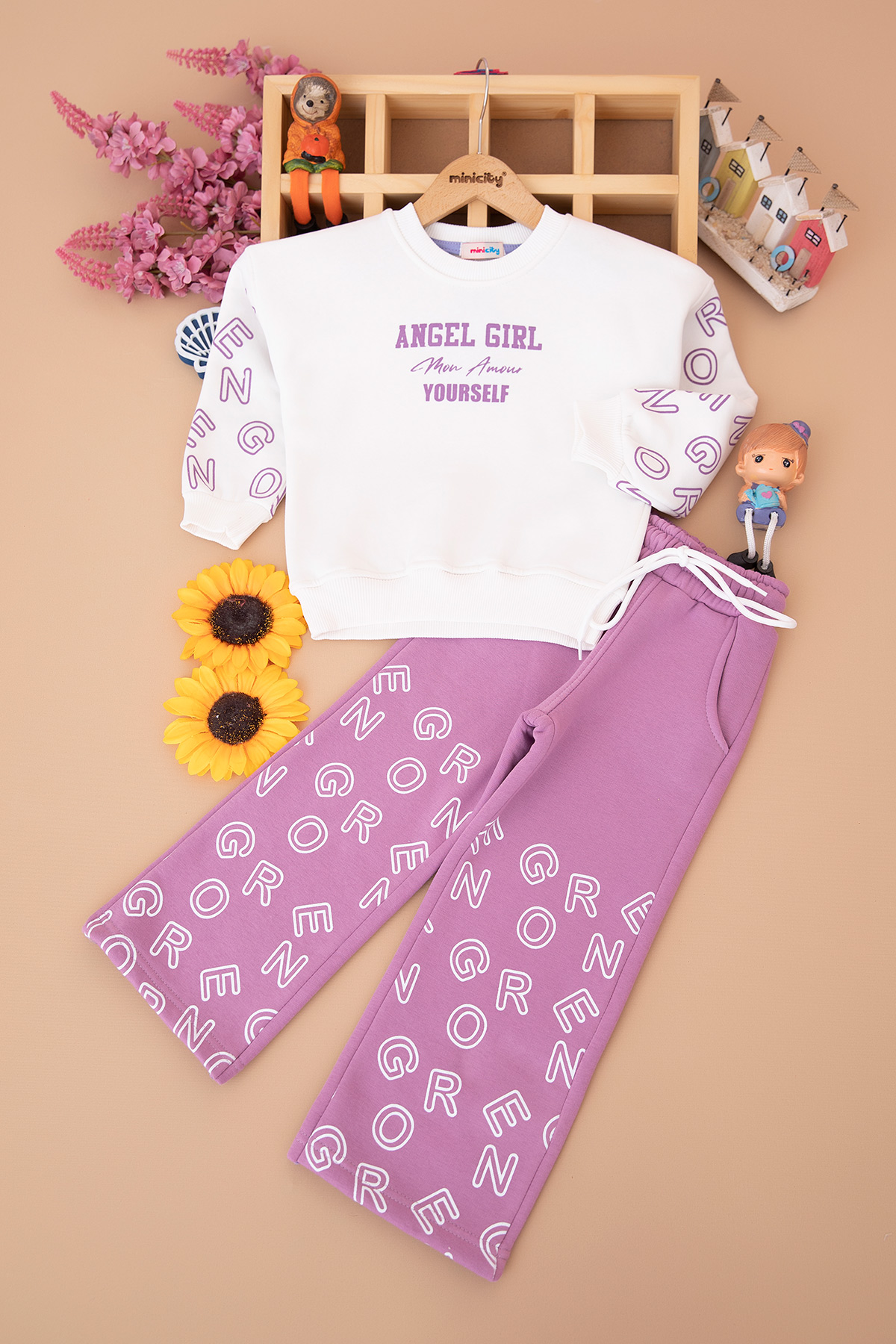 Kız Çocuk Angel Girl Baskılı Üçip Takım - 5068 (3-10 Yaş)