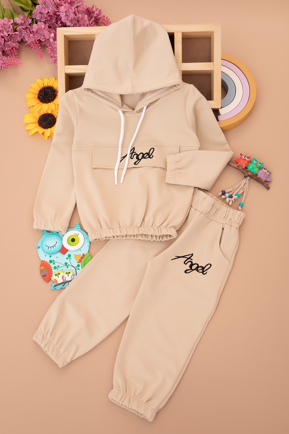 Kız Çocuk Angel Nakışlı Kapşonlu Takım (3-11 Yaş)