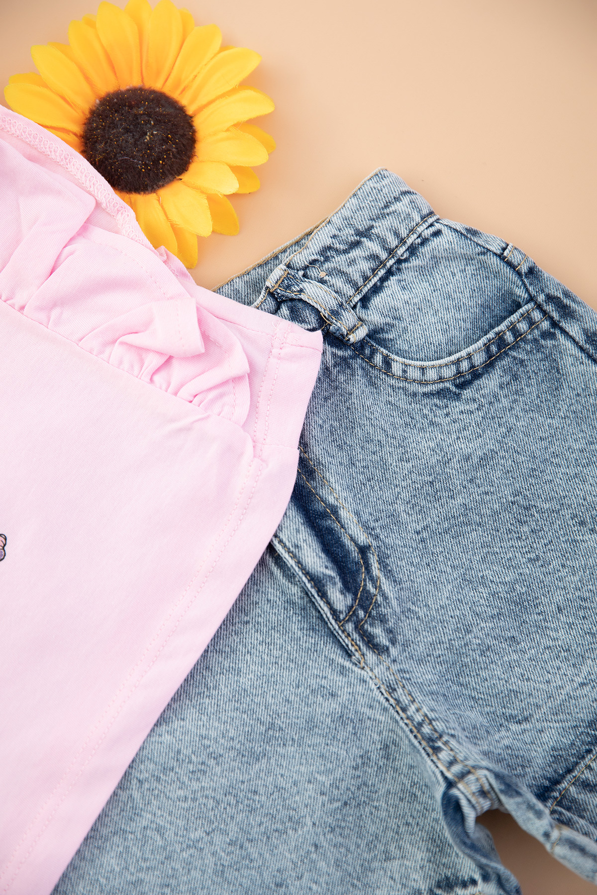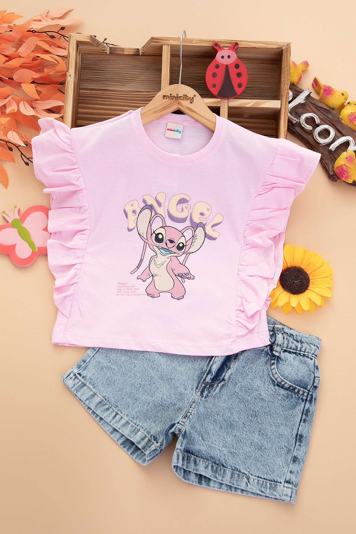 Kız Çocuk Angel Stitch Kot Şortlu Takım - 6102 (5-8 Yaş)