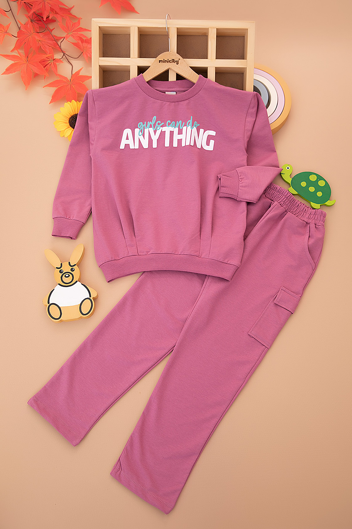 Kız Çocuk Anything Baskılı Takım - 24533 (7-10 Yaş)
