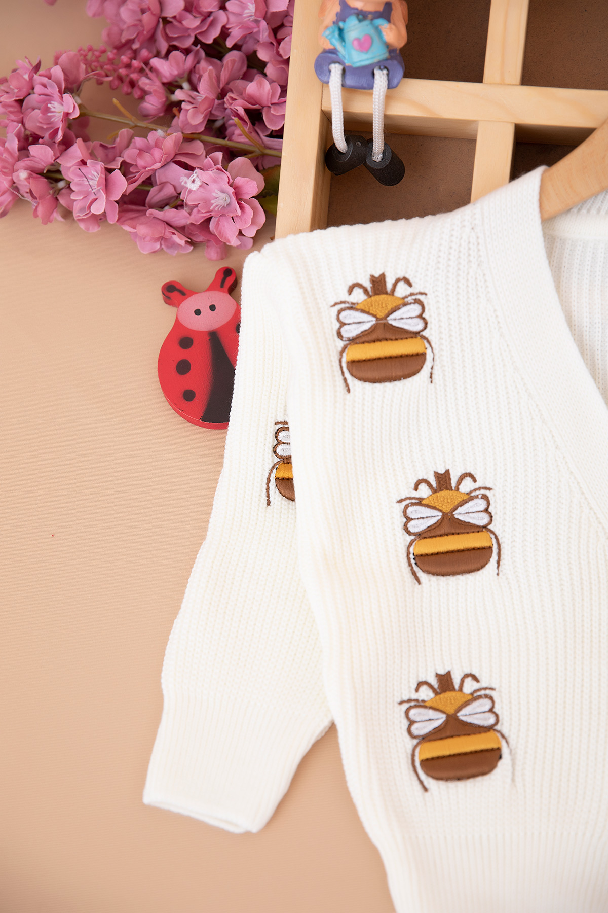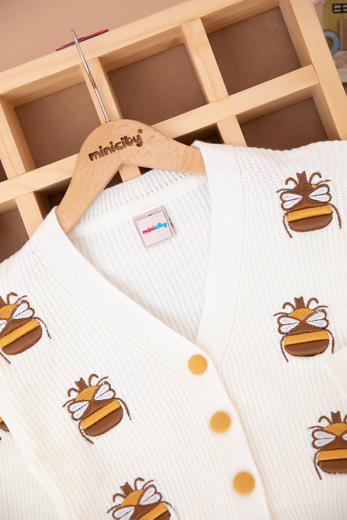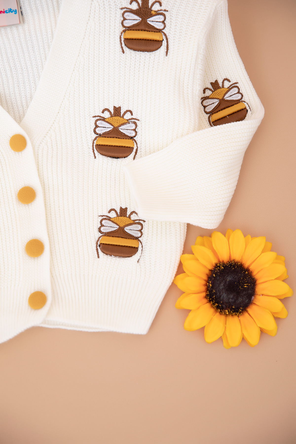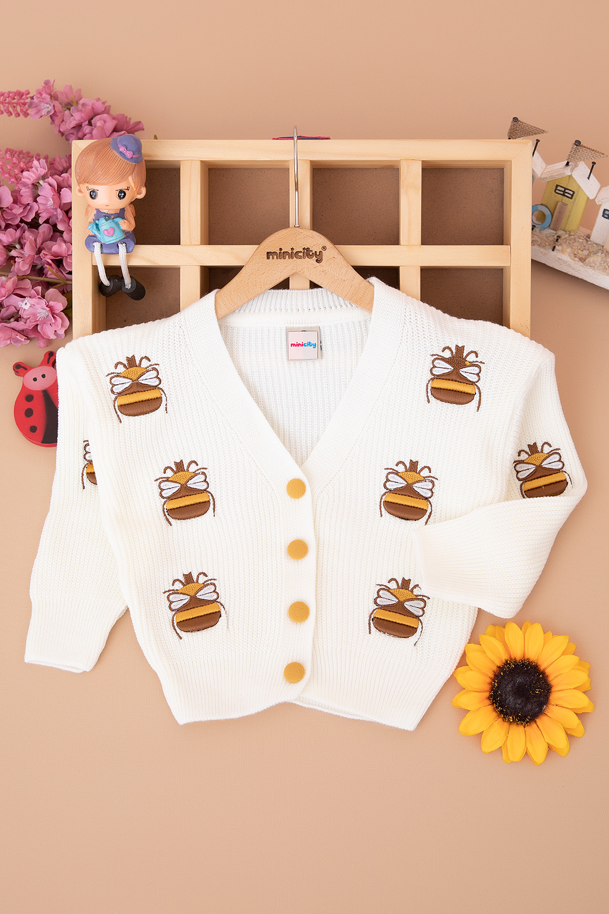 Kız Çocuk Arı Nakışlı Triko Düğmeli Hırka (2-8 Yaş)
