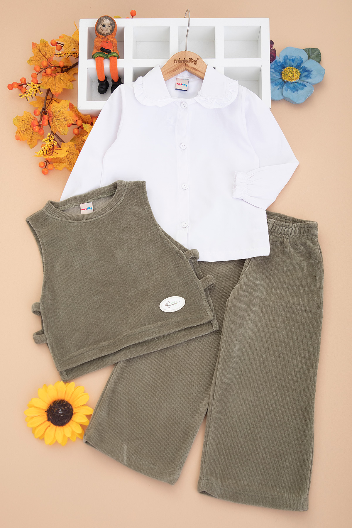 Kız Çocuk Armalı Üçlü Triko Takım - 26046 (3-6 Yaş)