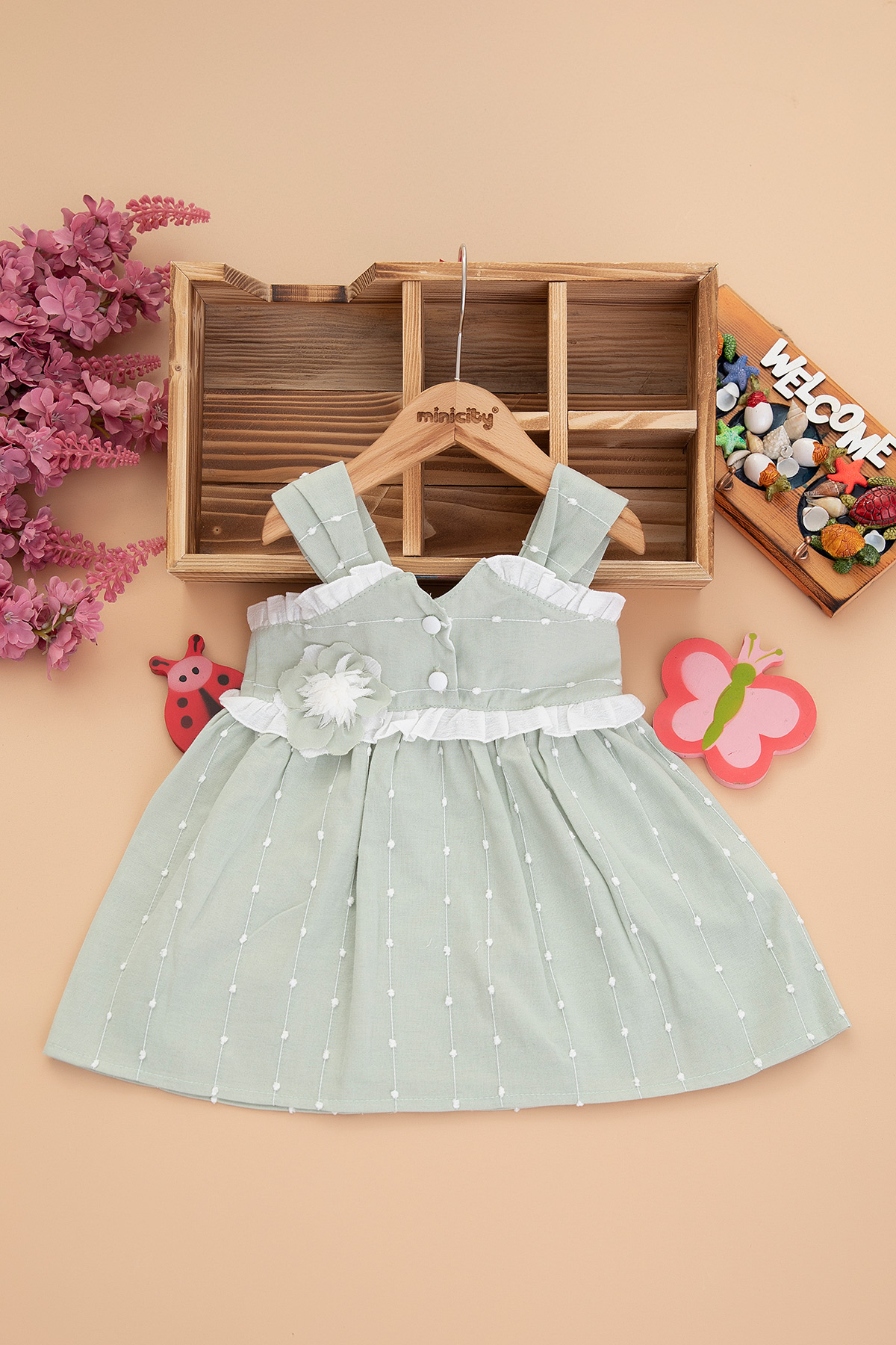 Kız Çocuk Askı Büzgülü Nopeli Elbise - 5111 (2-5 Yaş)