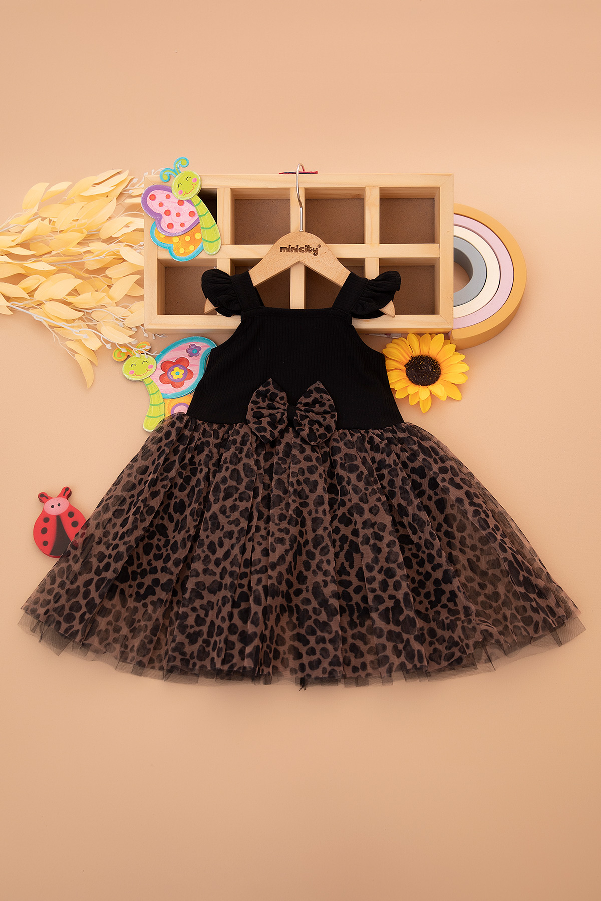 Kız Çocuk Askılı Leopar Tüllü Elbise - 1680 (3-6 Yaş)