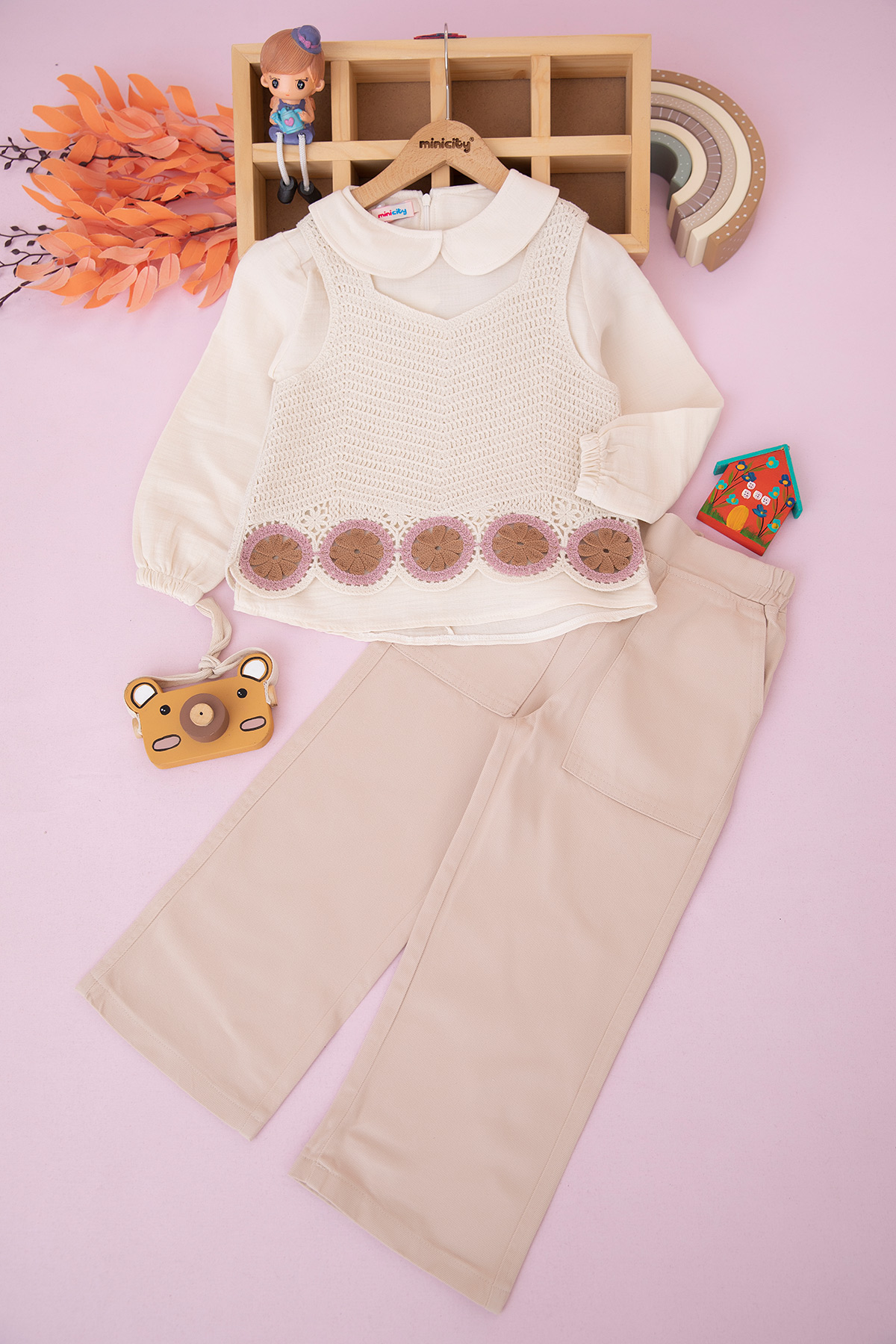 Kız Çocuk Askılı Süzene Süveter Takım - 1756 (6-9 Yaş)