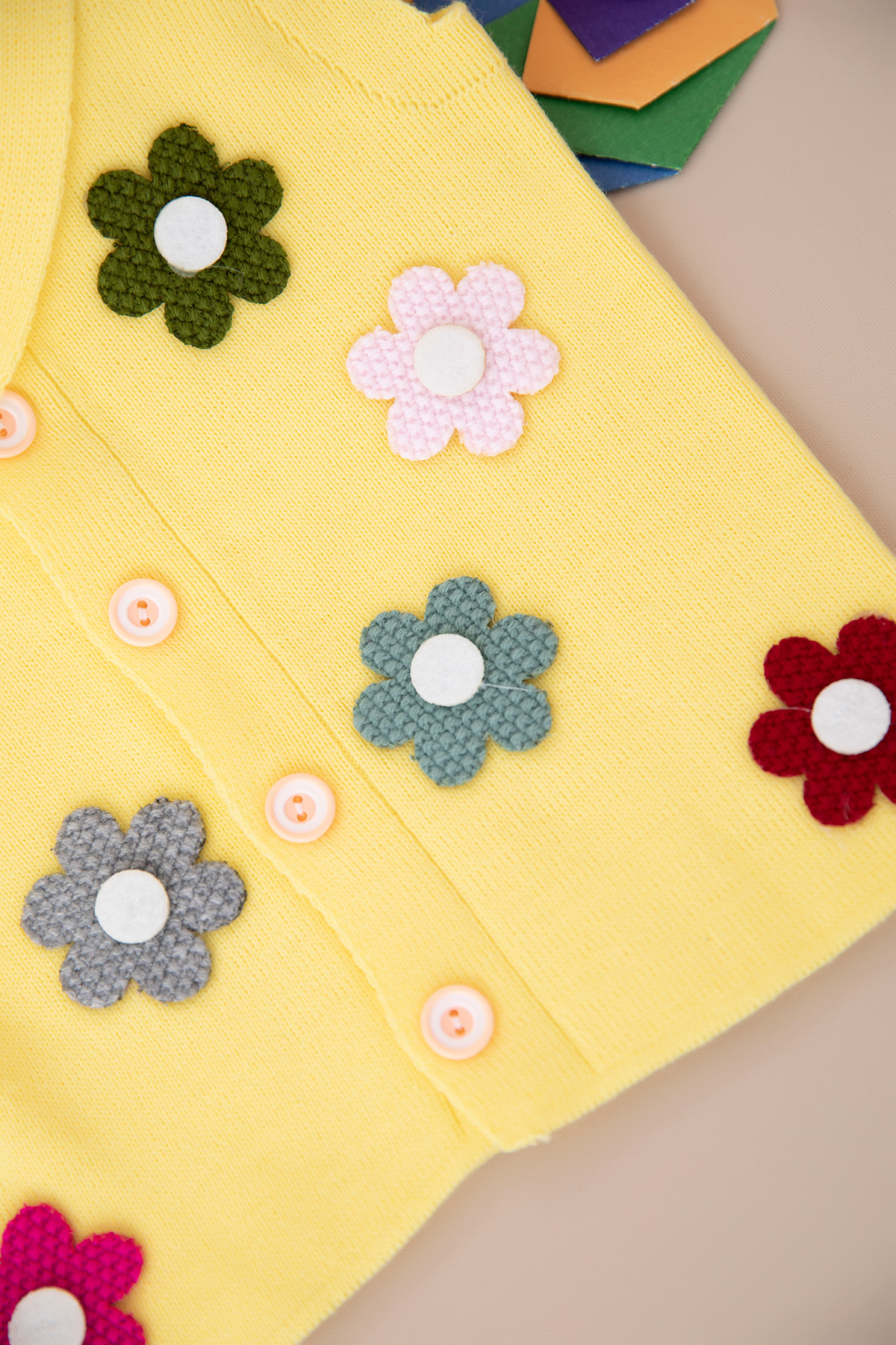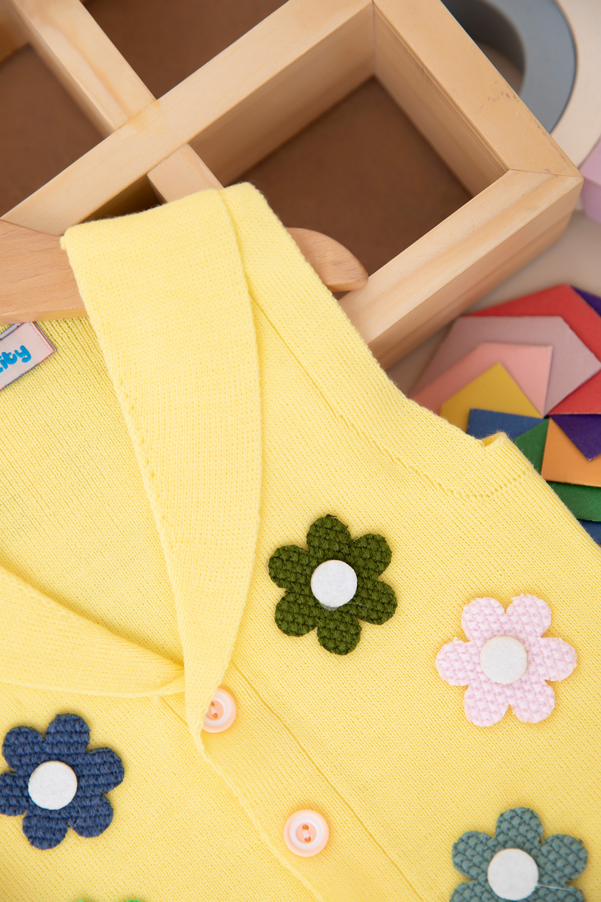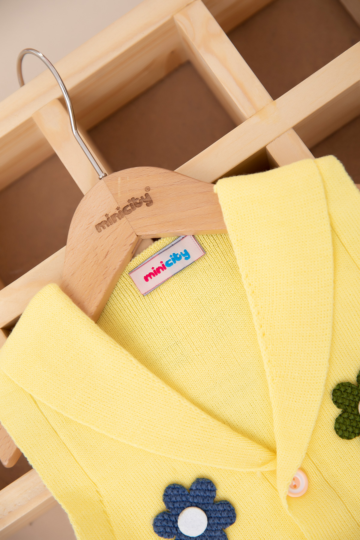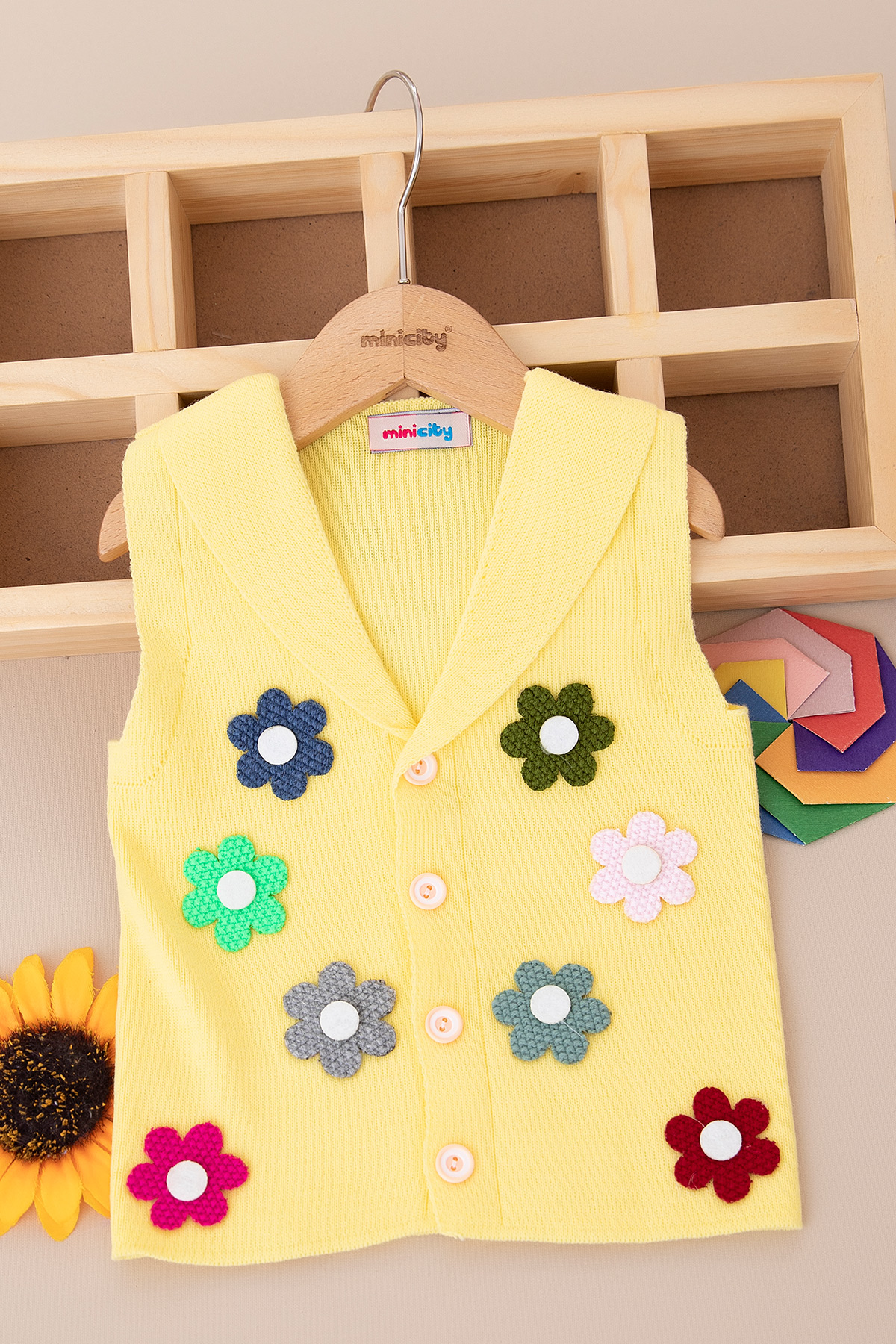Kız Çocuk Ata Yaka Çiçekli Triko Yelek - 498 (1-5 Yaş)