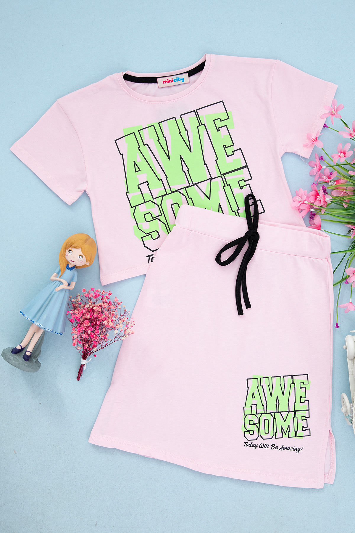 Kız Çocuk Awesome Baskılı Etekli Takım - 1965 (5-10 Yaş)