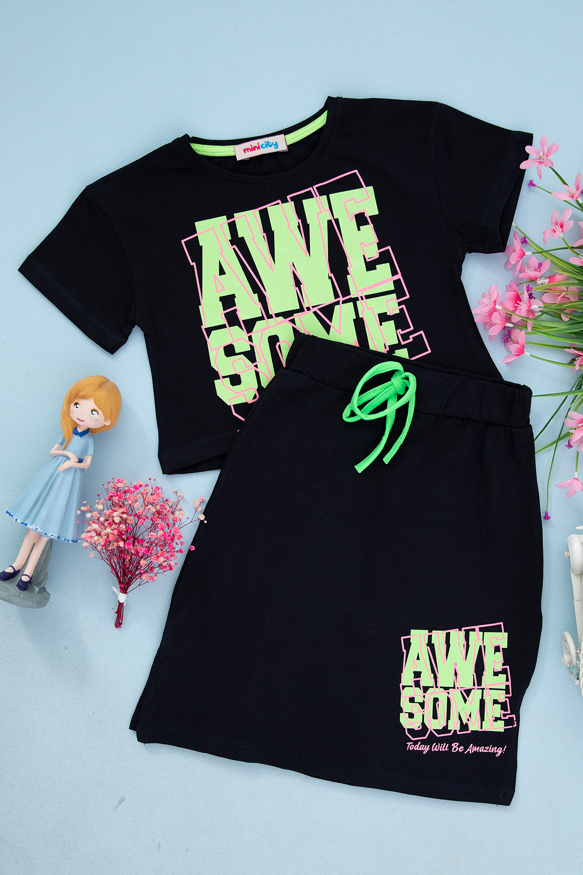 Kız Çocuk Awesome Baskılı Etekli Takım - 1965 (5-10 Yaş)