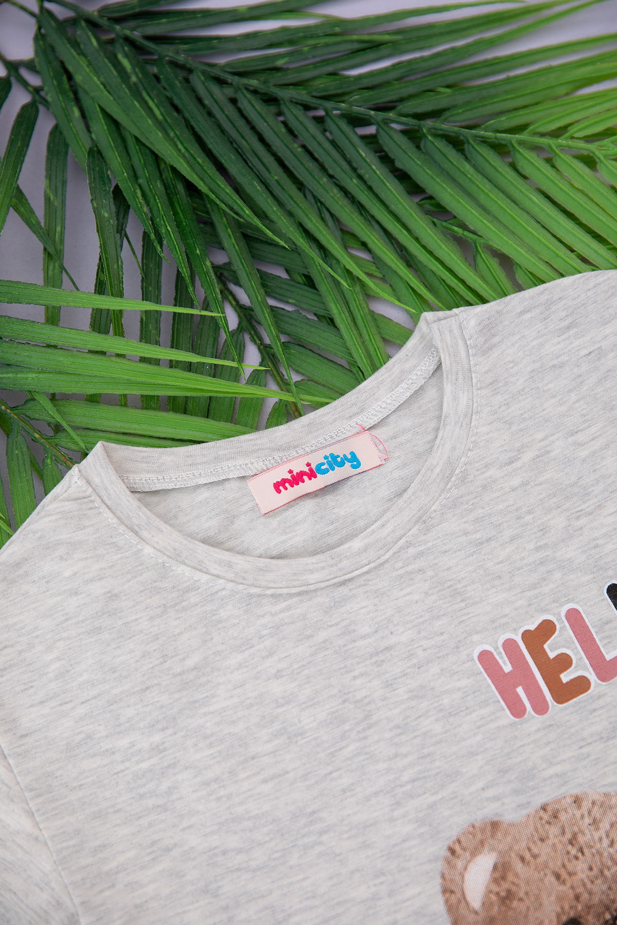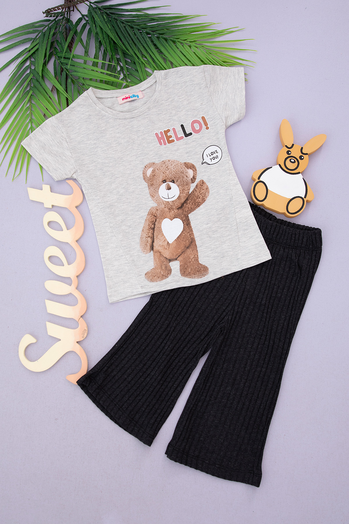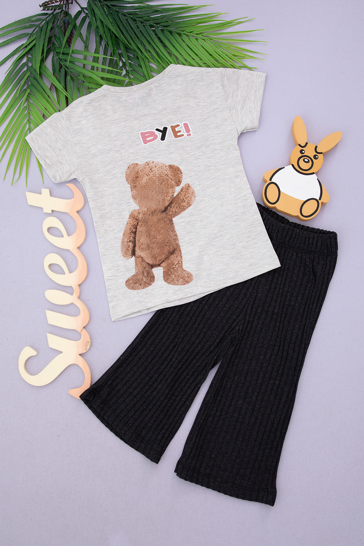 Kız Çocuk Ayıcık Baskılı Fitilli Kapri Takım - 5061 (2-8 Yaş)