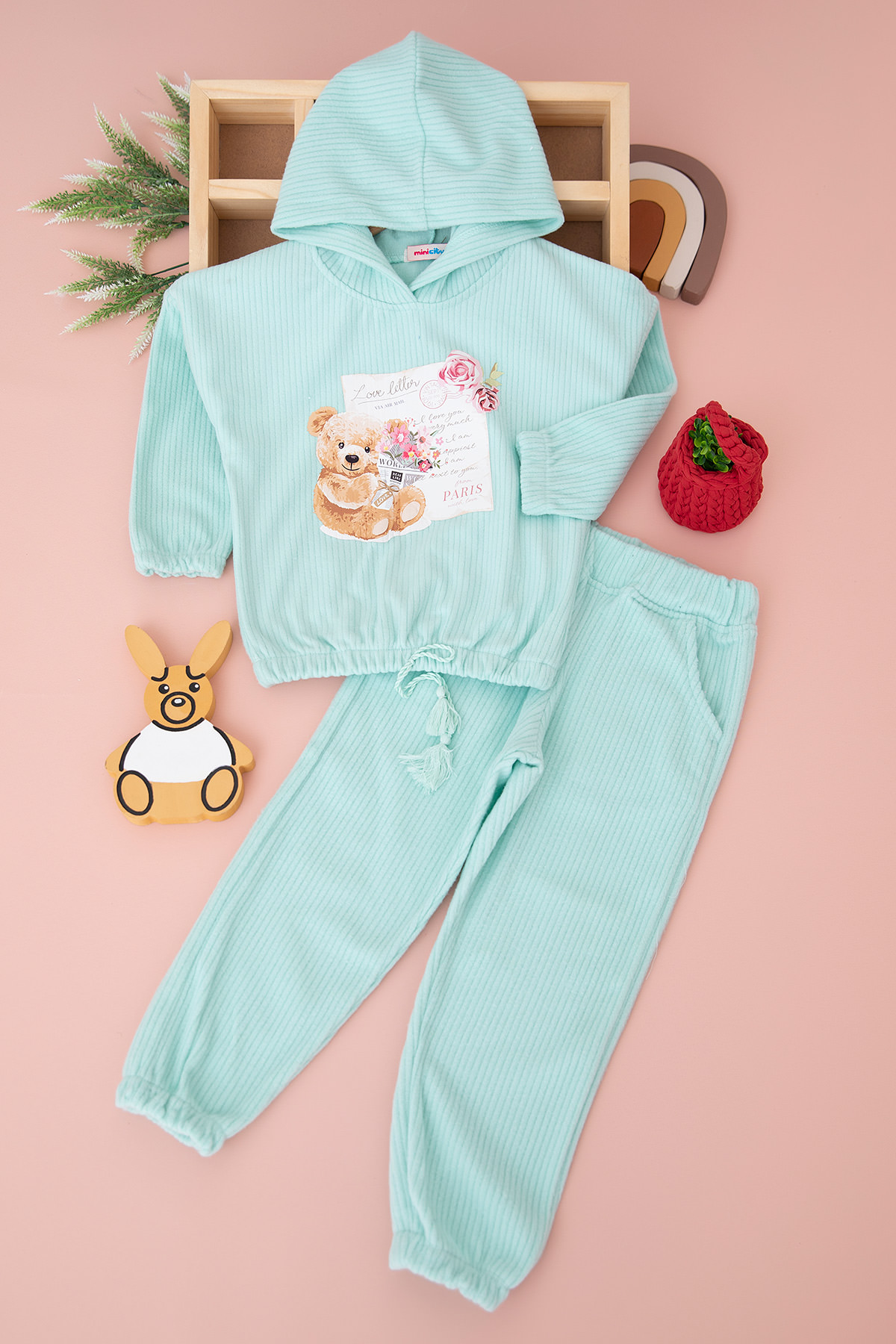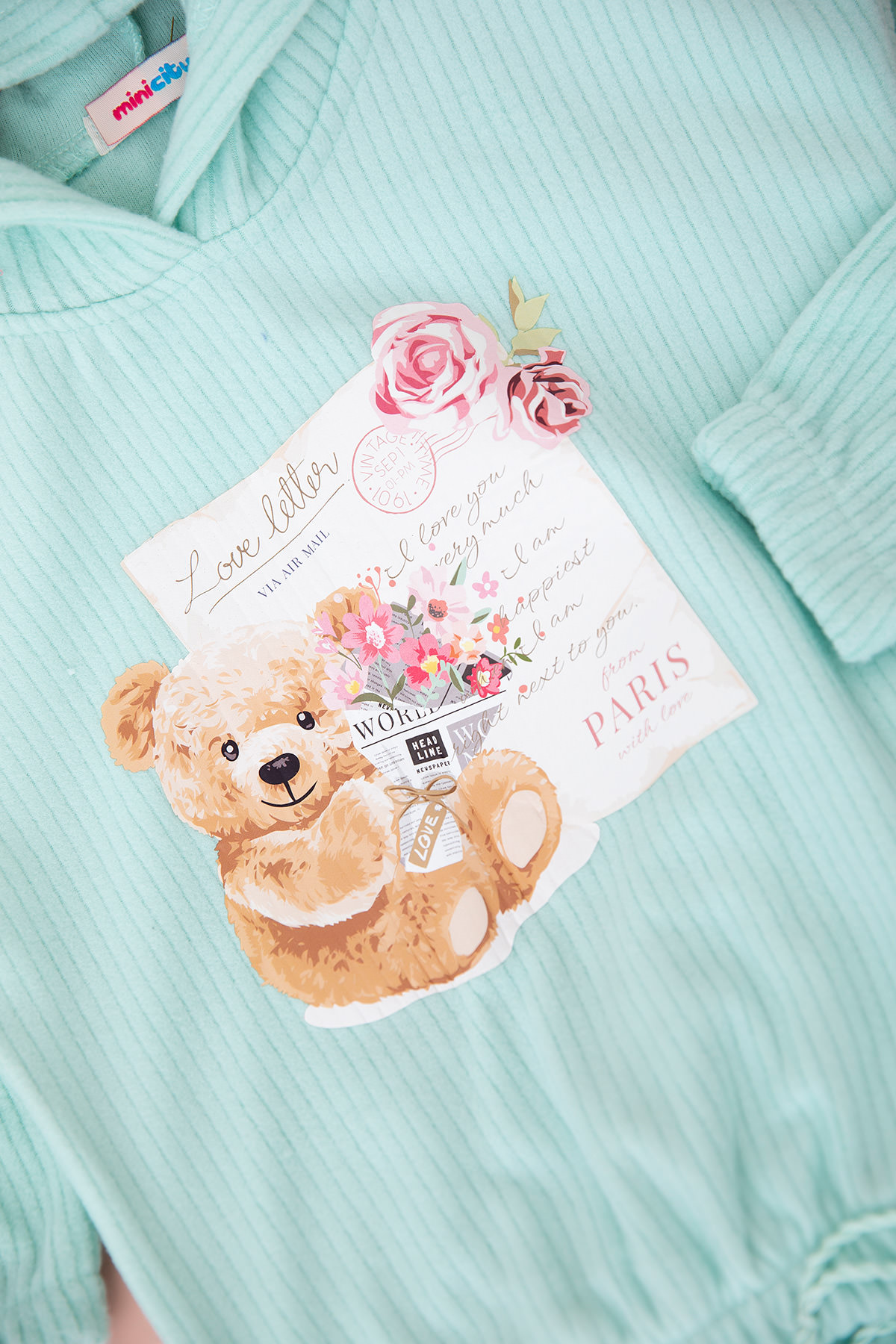Kız Çocuk Ayıcık Baskılı Kadife Takım - 4108 (6-9 Yaş)