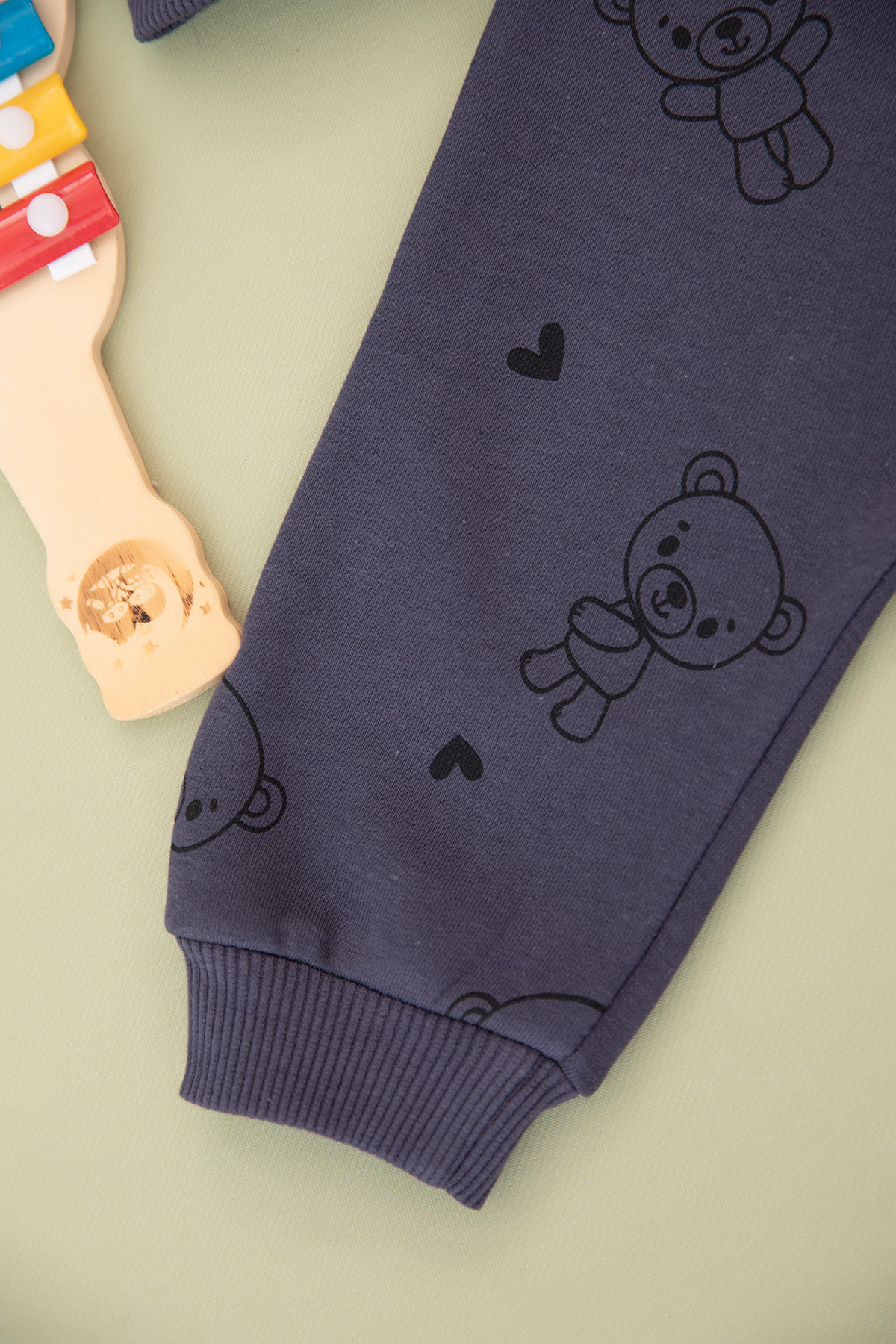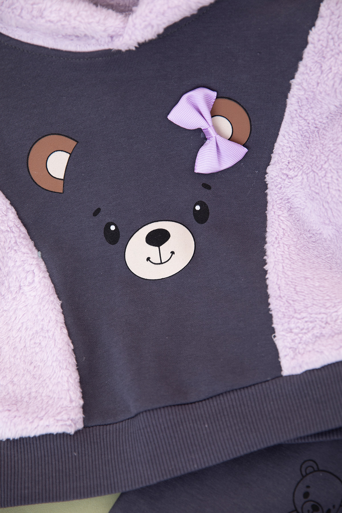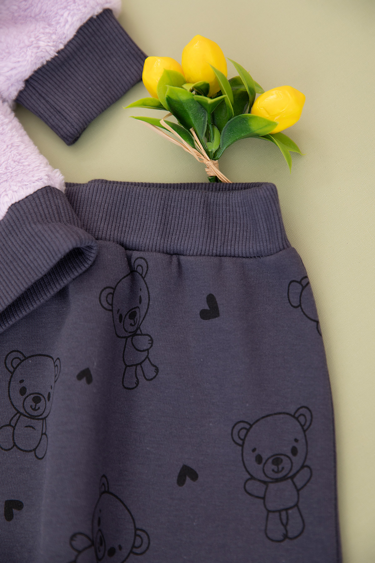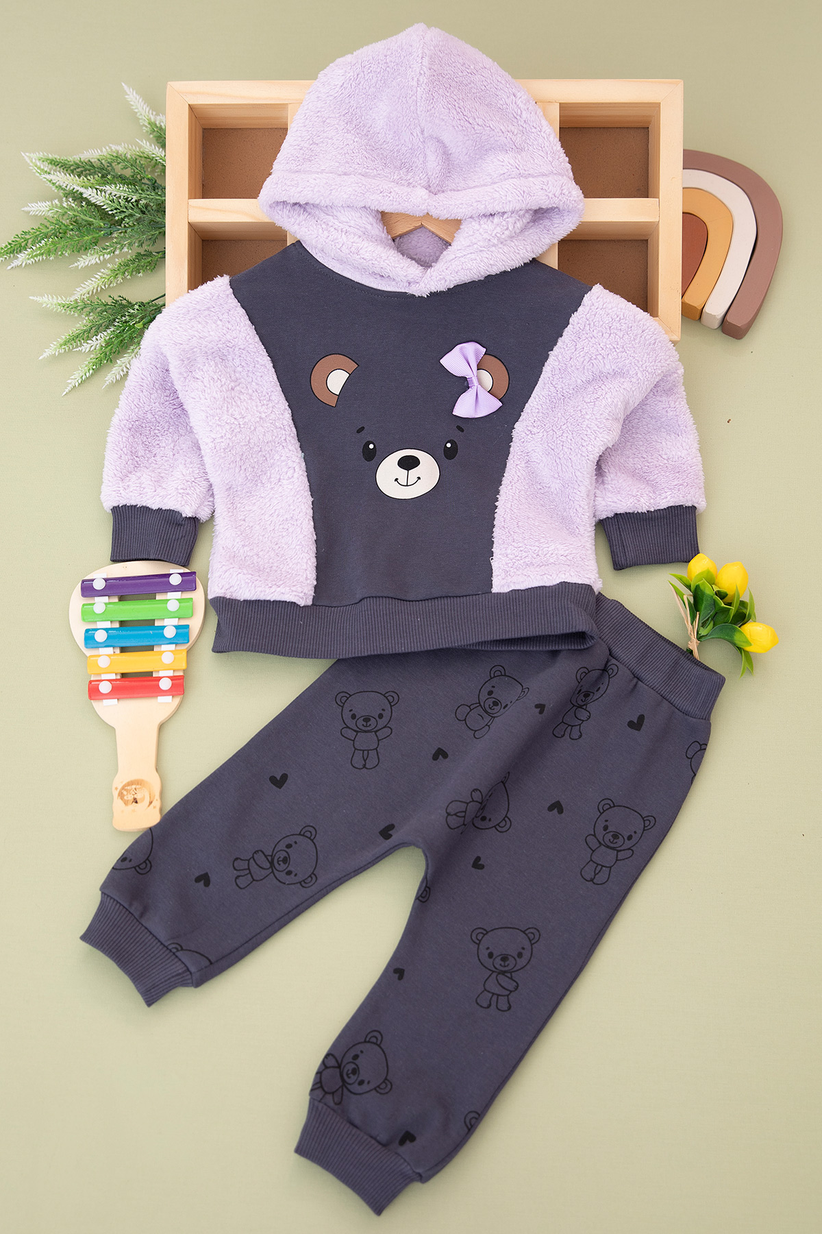 Kız Çocuk Ayıcık Baskılı Welsoflu Üçip Takım - 6216