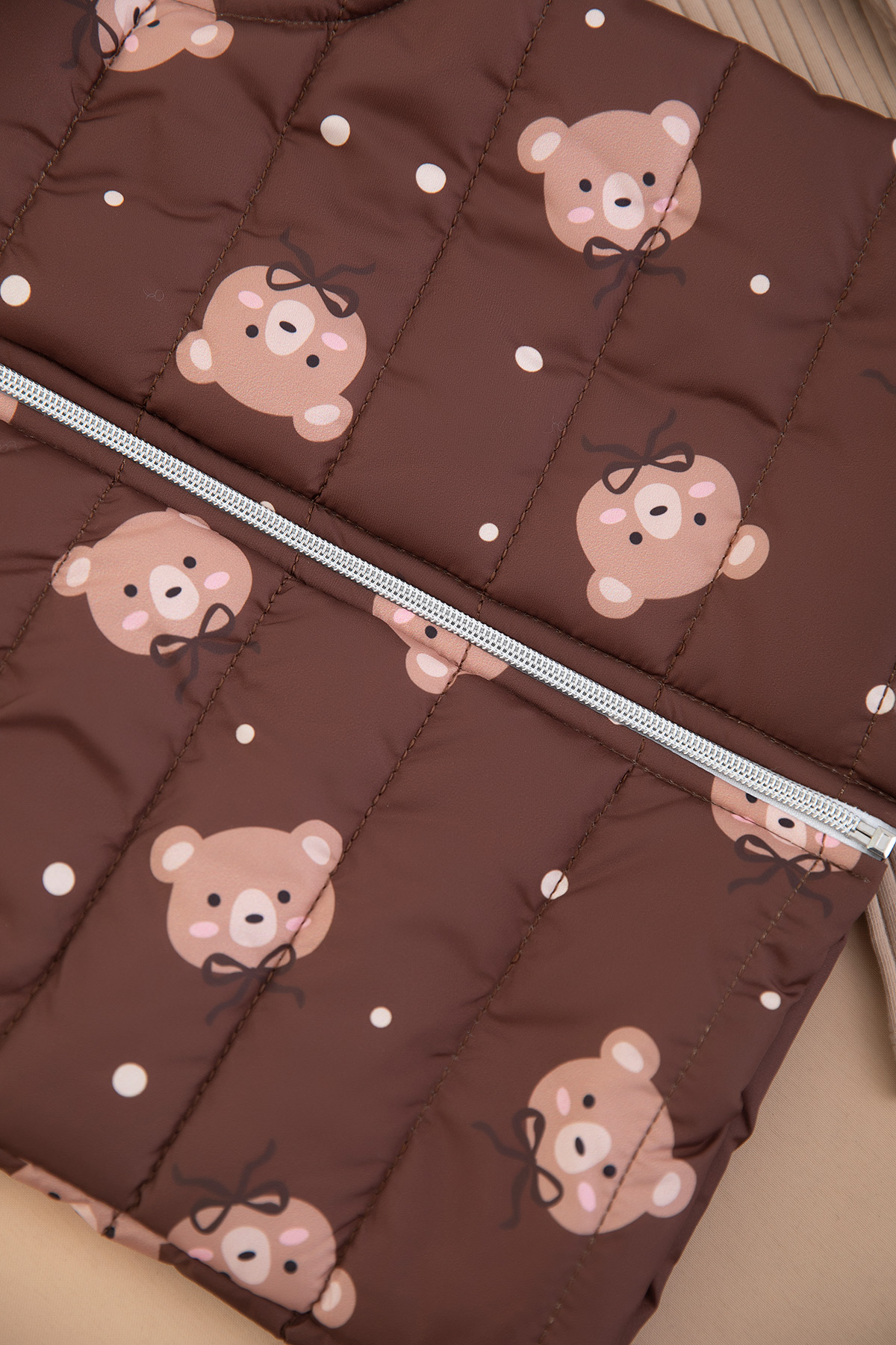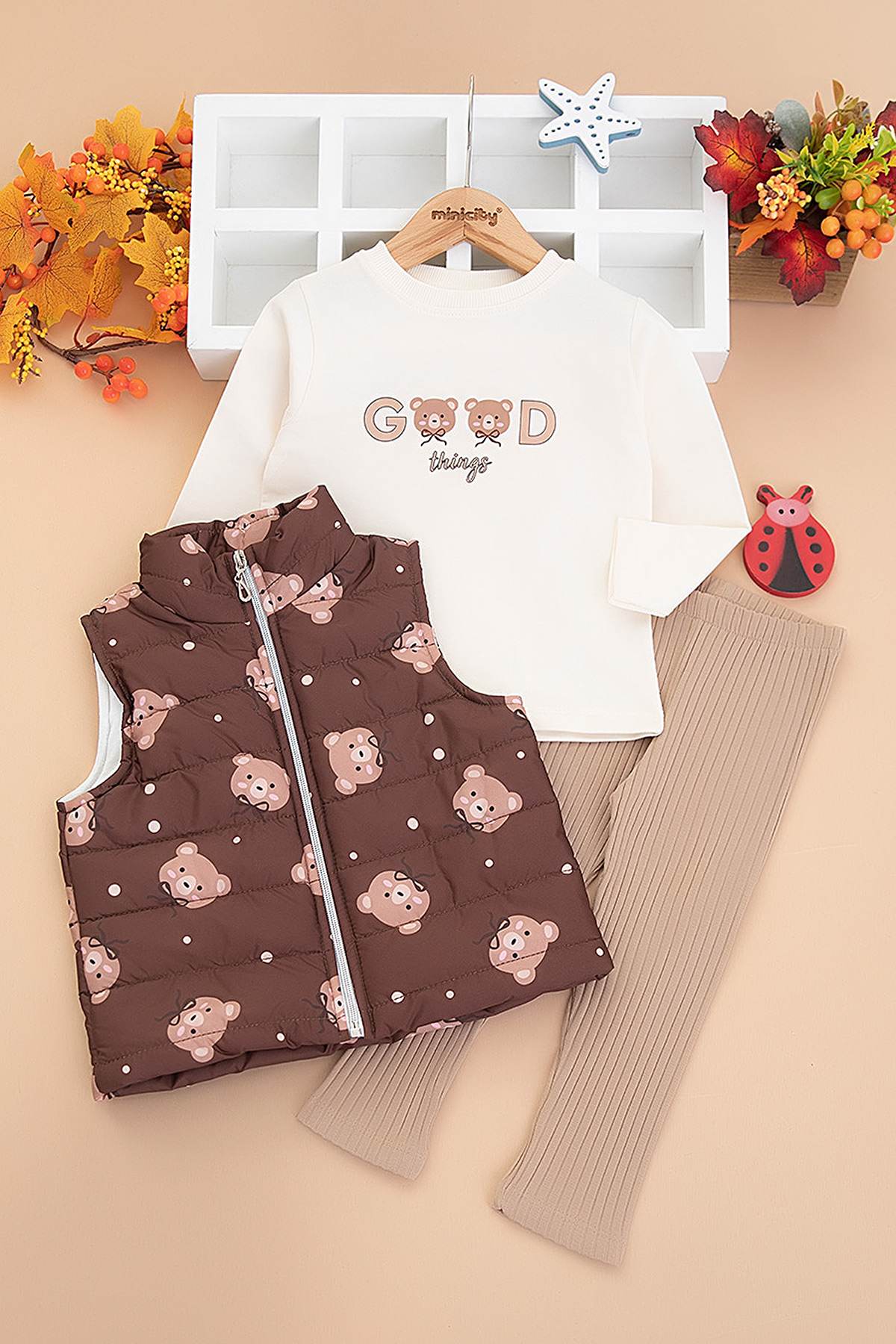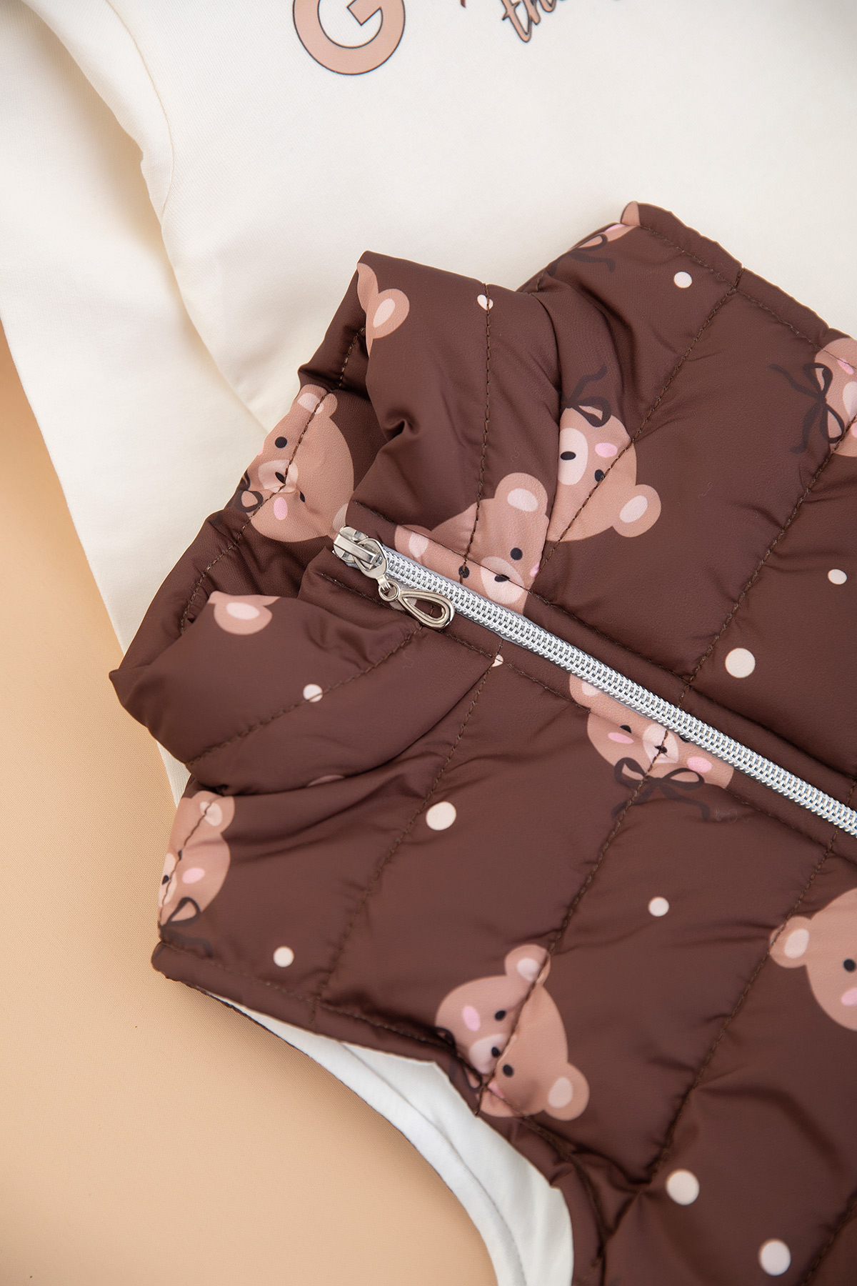 Kız Çocuk Ayıcık Baskılı Yelekli Takım - 3689 (3-6 Yaş)