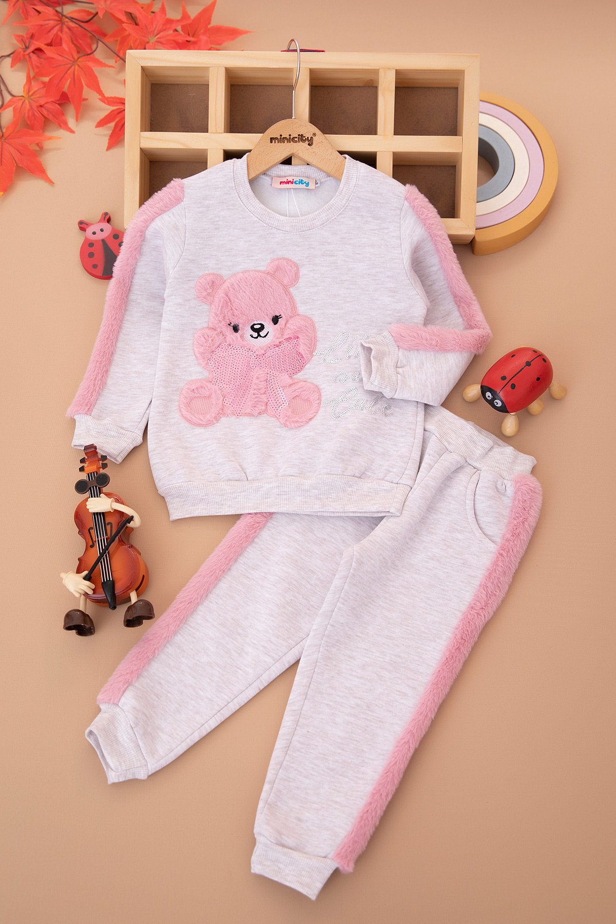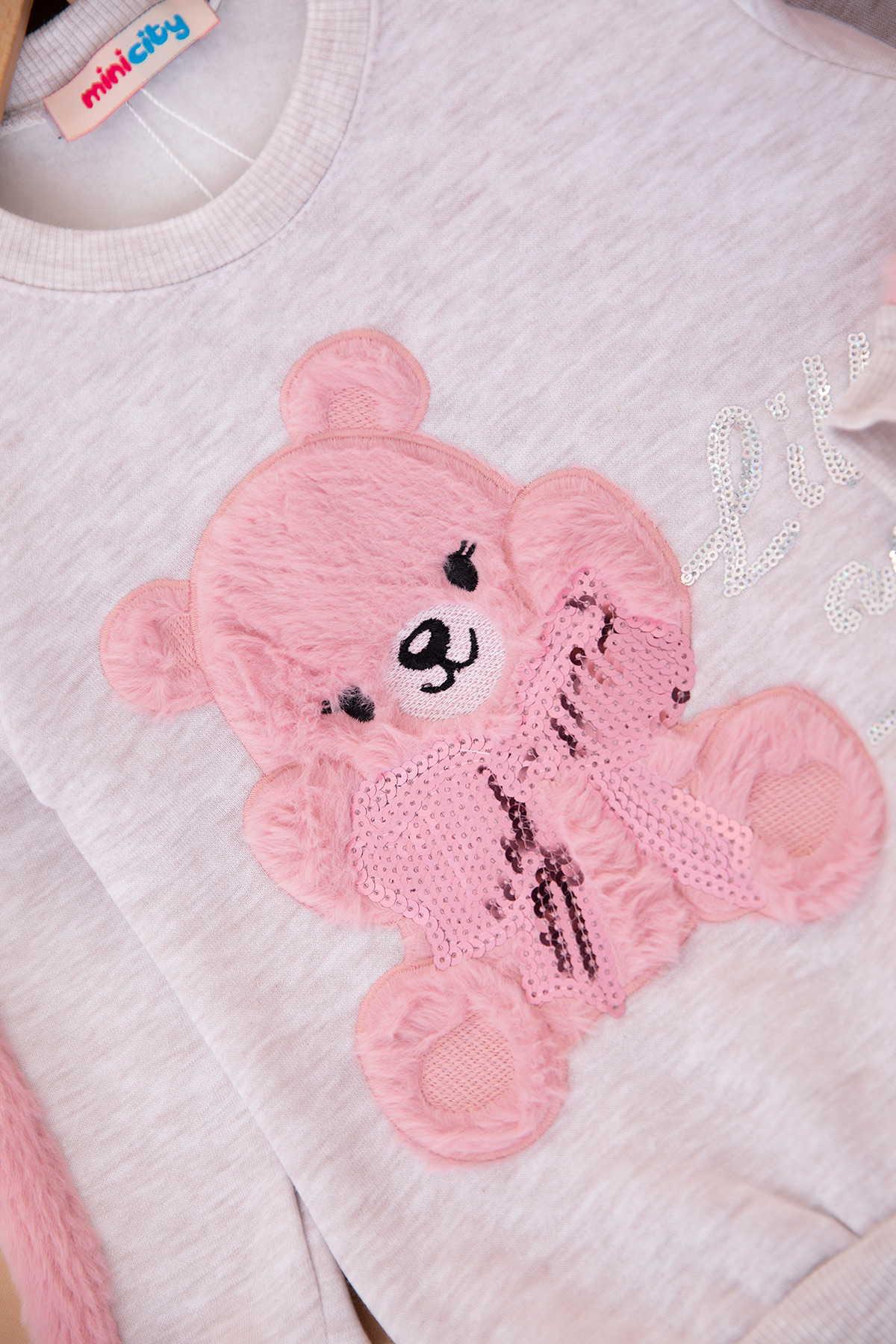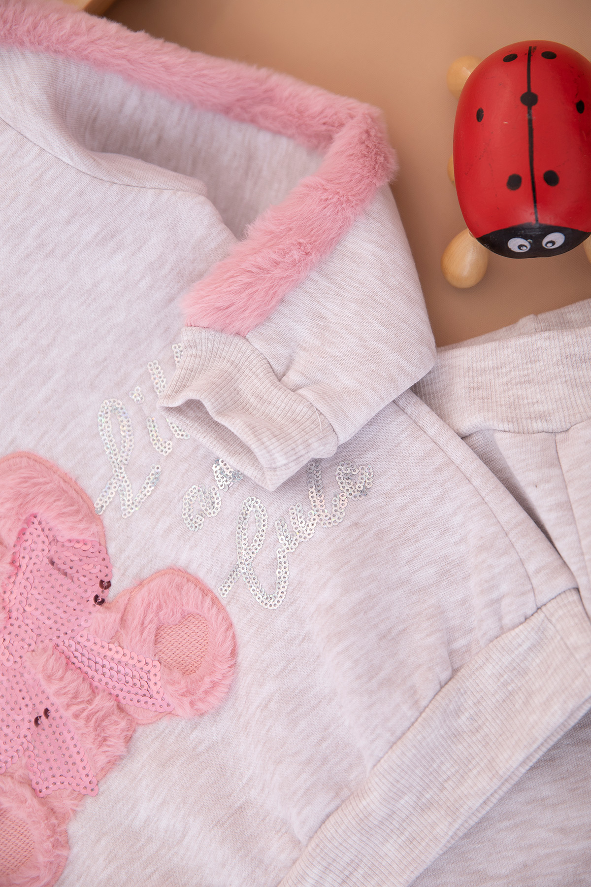 Kız Çocuk Ayıcık Nakışlı Üçip Takım - 131 (3-7 Yaş)