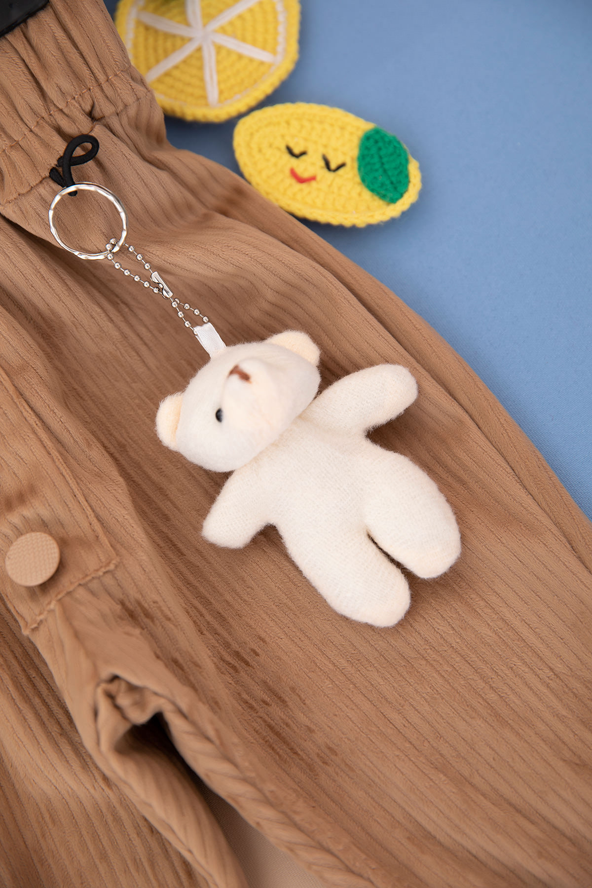 Kız Çocuk Ayıcıklı Düğmeli Kadife Pantolon - 26519 (3-7 Yaş)