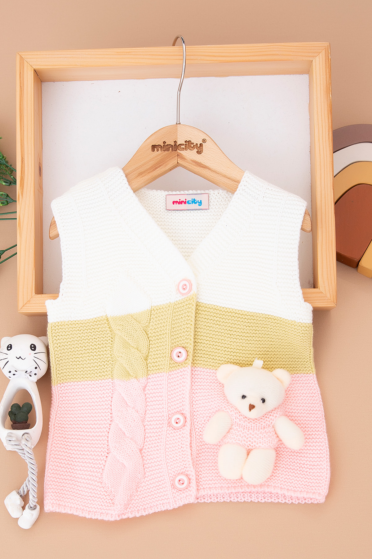 Kız Çocuk Ayıcıklı Triko Yelek - 0493 (1-5 Yaş)
