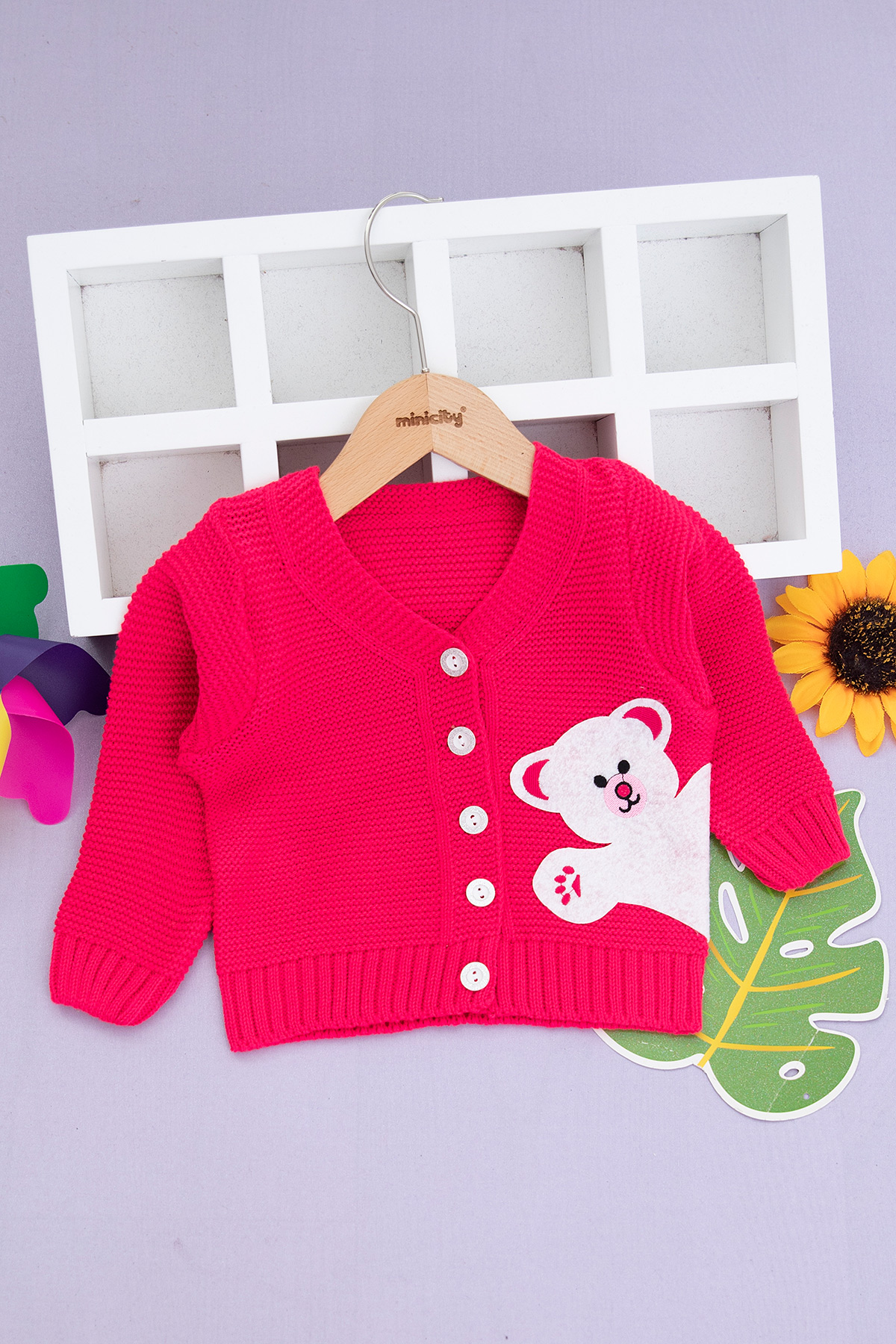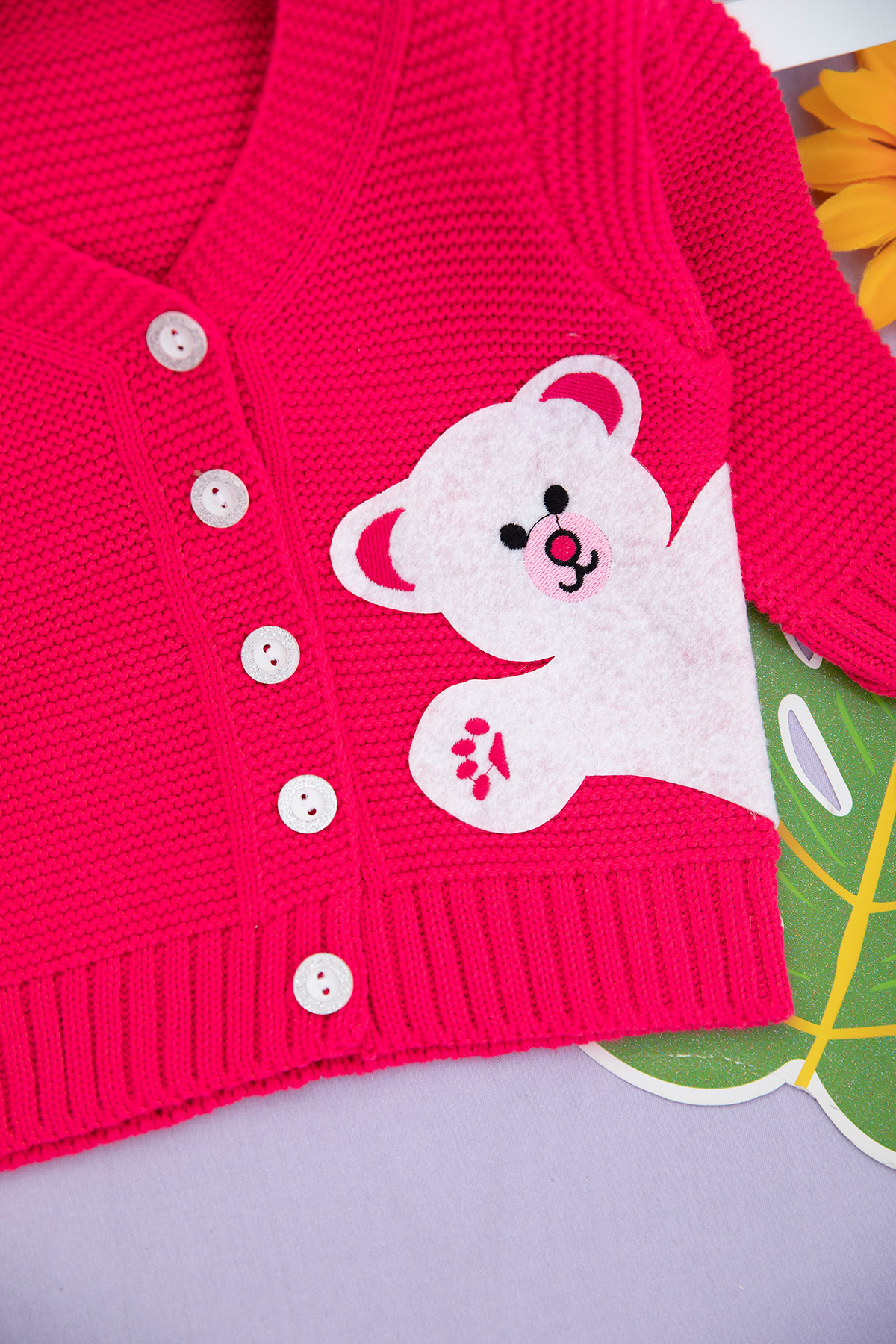 Kız Çocuk Ayılı Hırka - 0907 (1-5 Yaş)