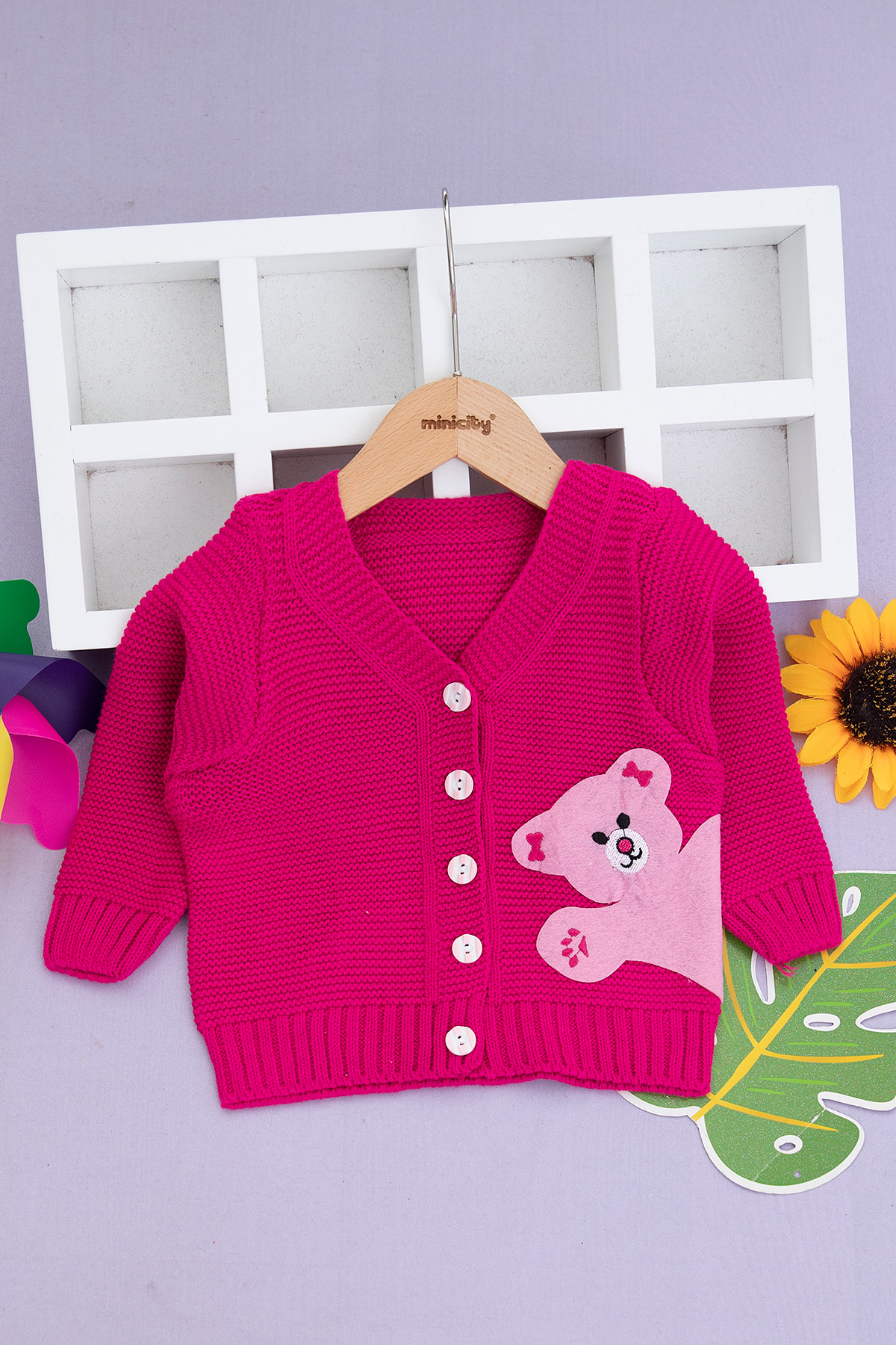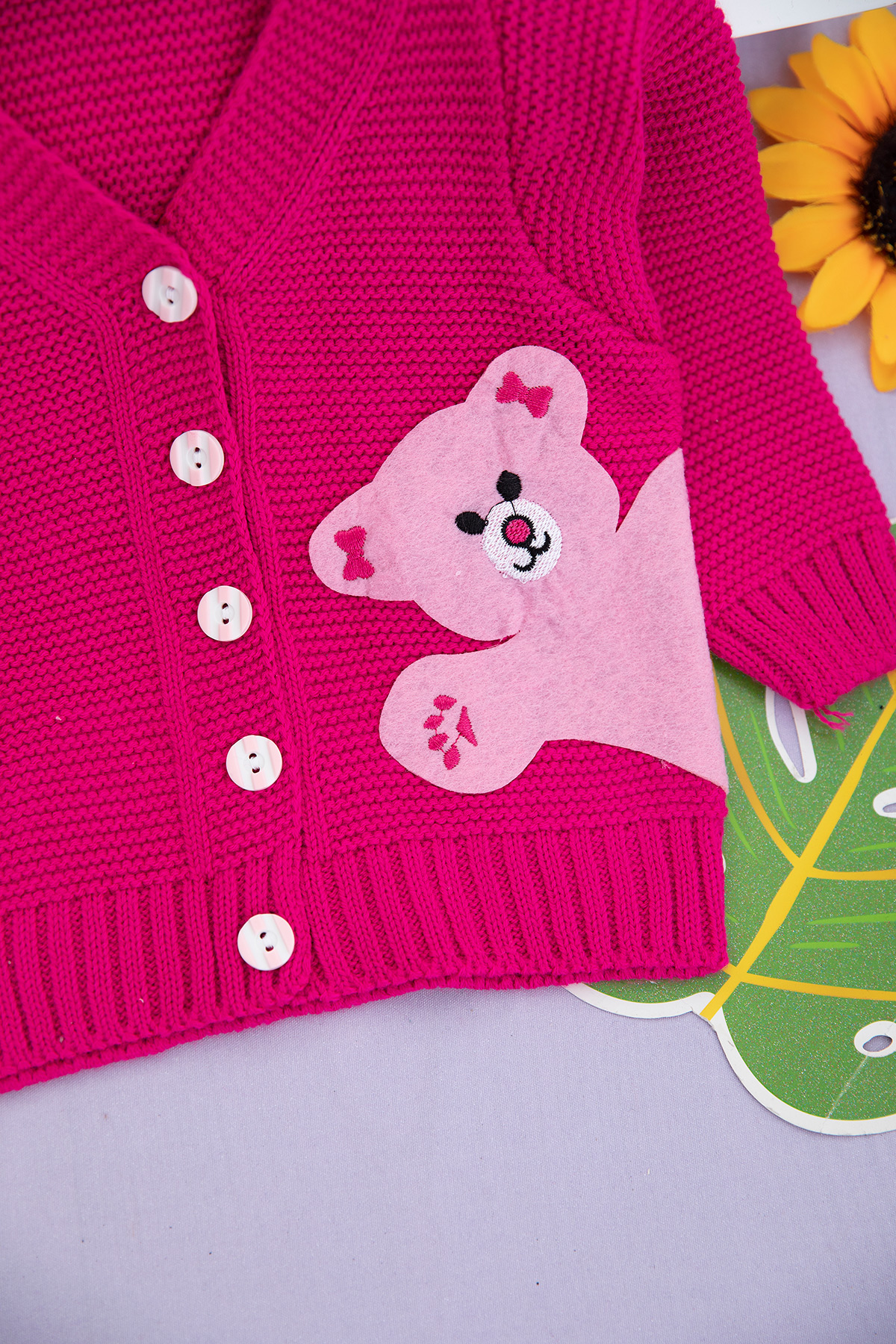 Kız Çocuk Ayılı Hırka - 0907 (1-5 Yaş)