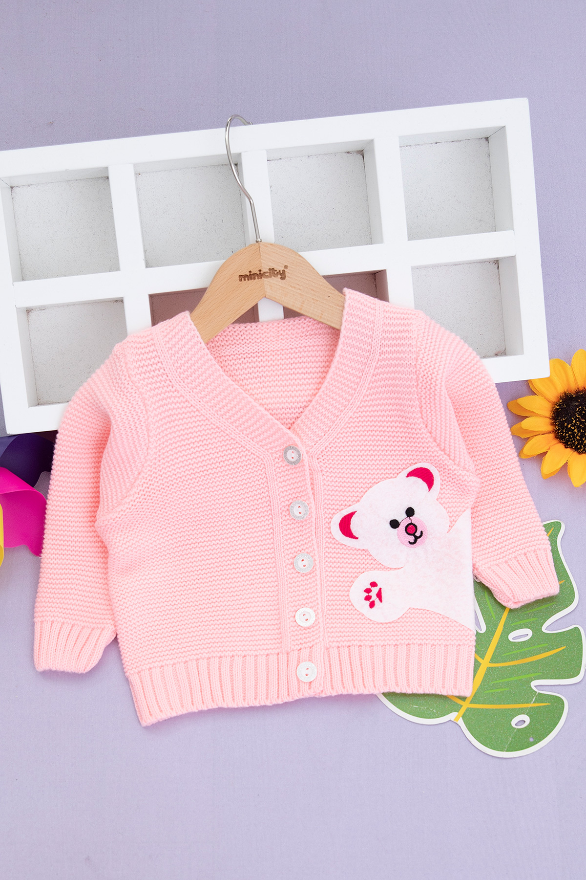 Kız Çocuk Ayılı Hırka - 0907 (1-5 Yaş)