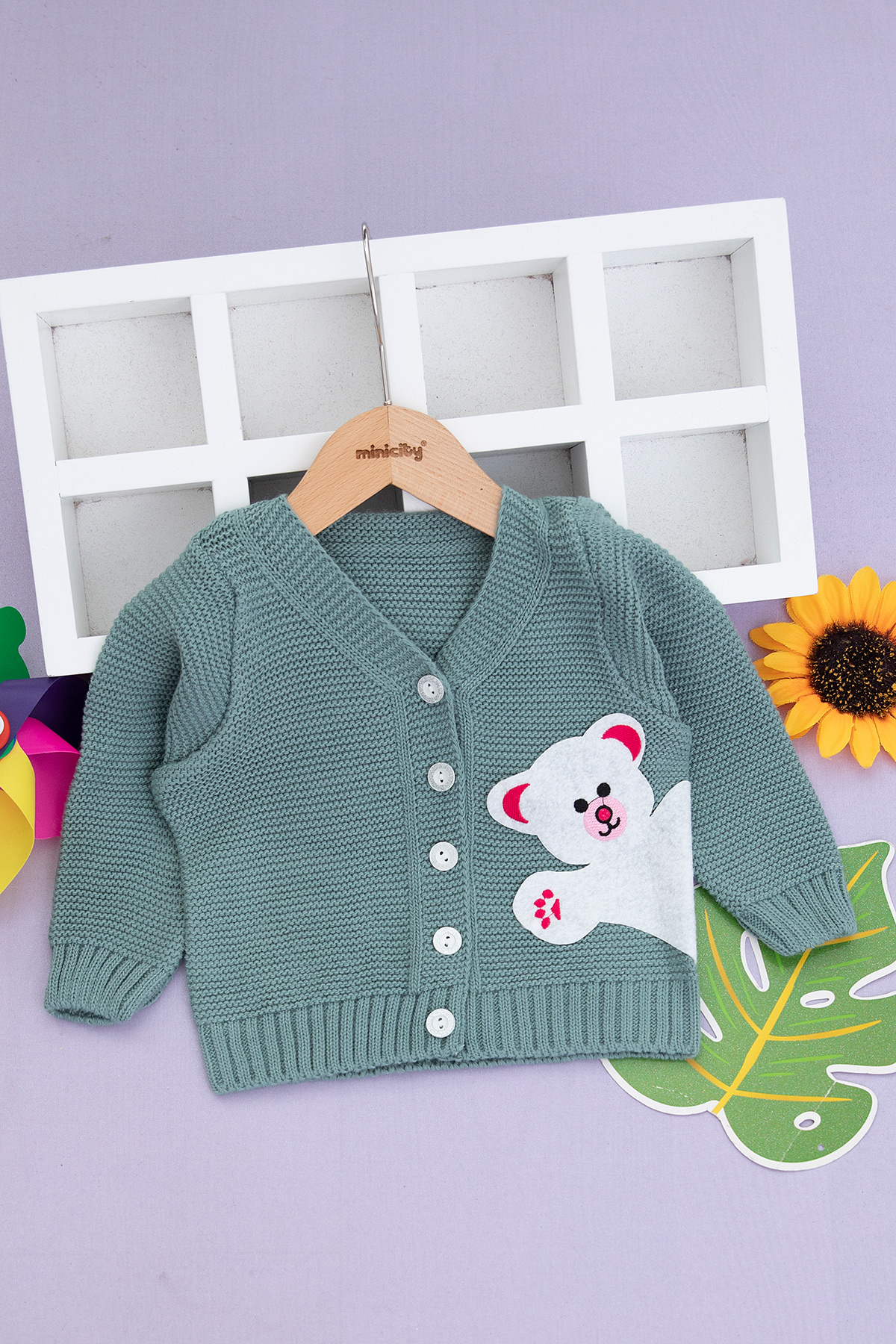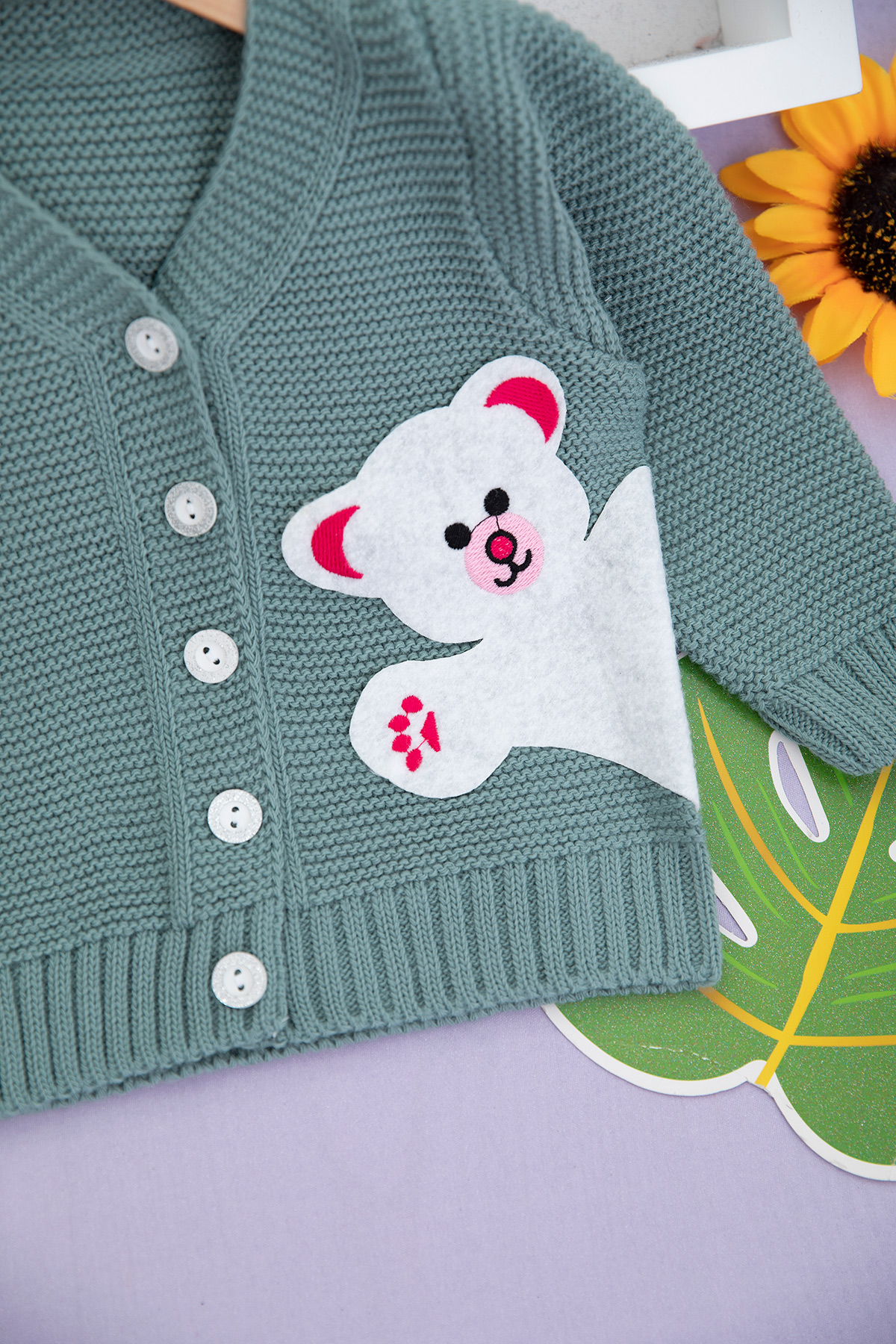 Kız Çocuk Ayılı Hırka - 0907 (1-5 Yaş)