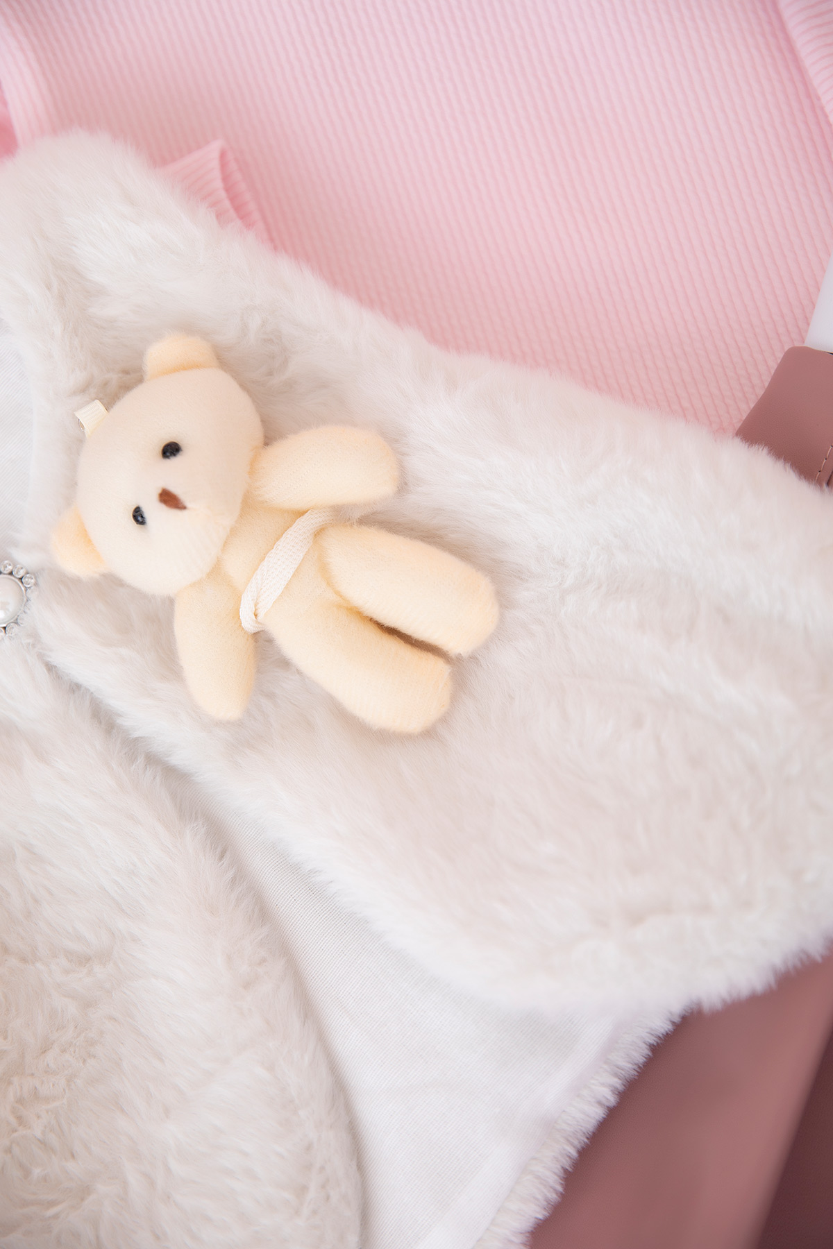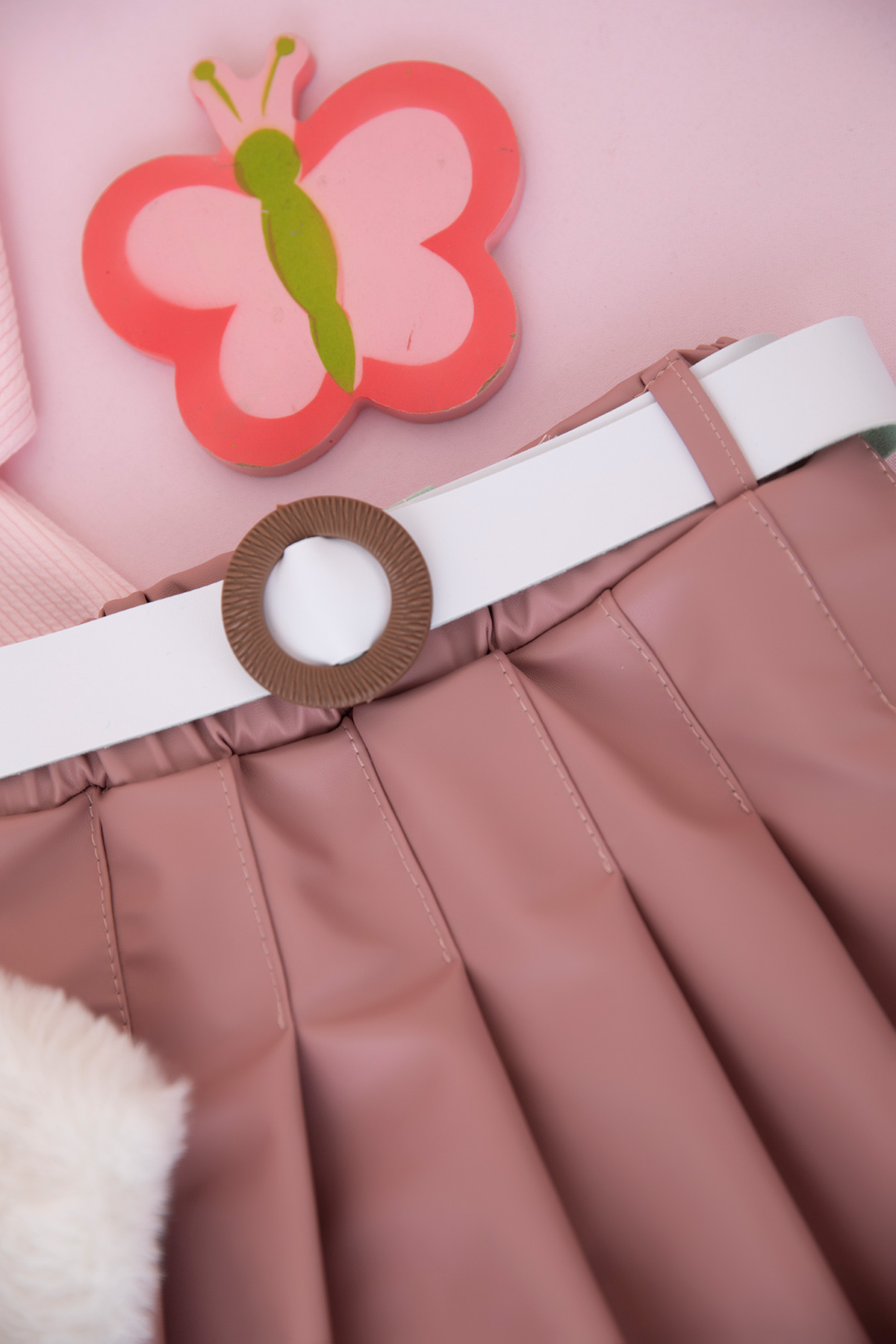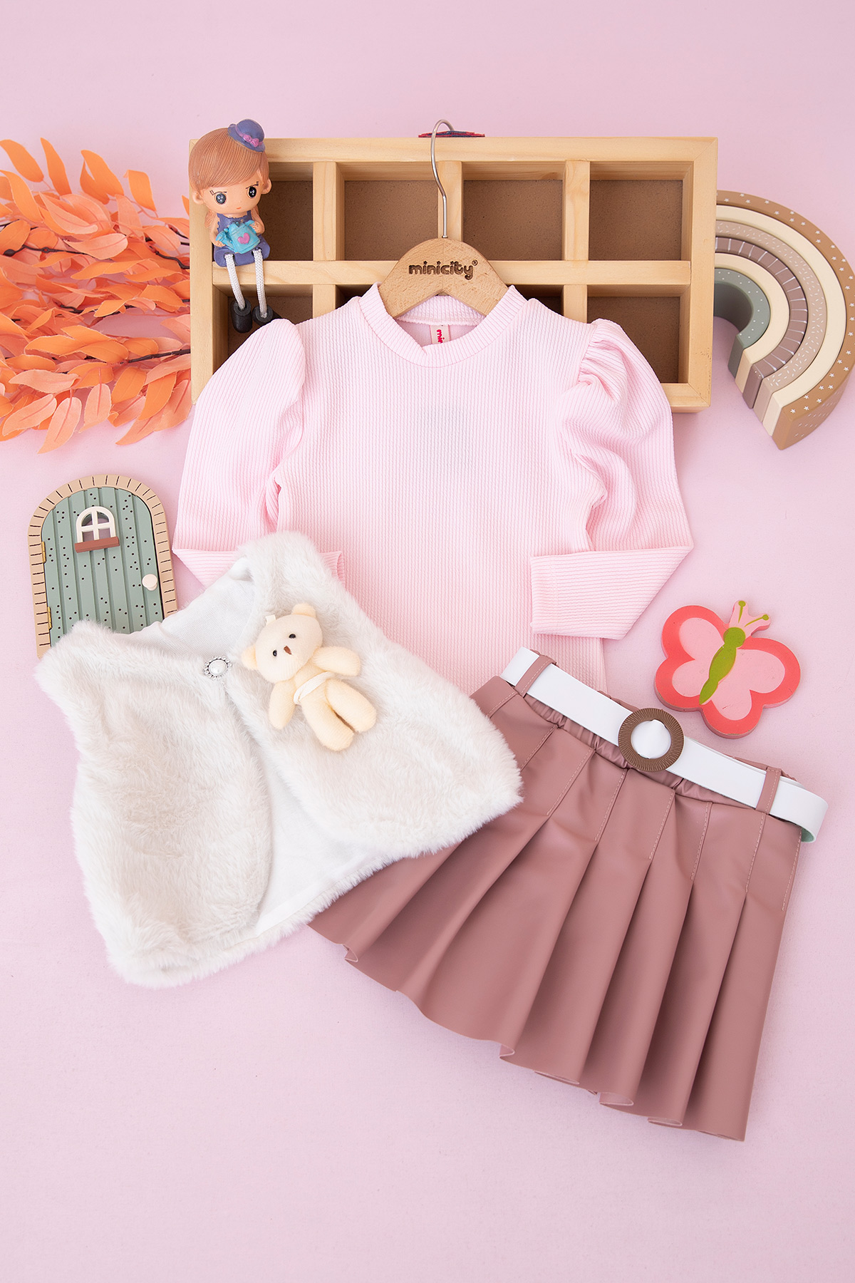 Kız Çocuk Ayılı Peluş Yelek Deri Etek Takım - 25072 (2-5 Yaş)