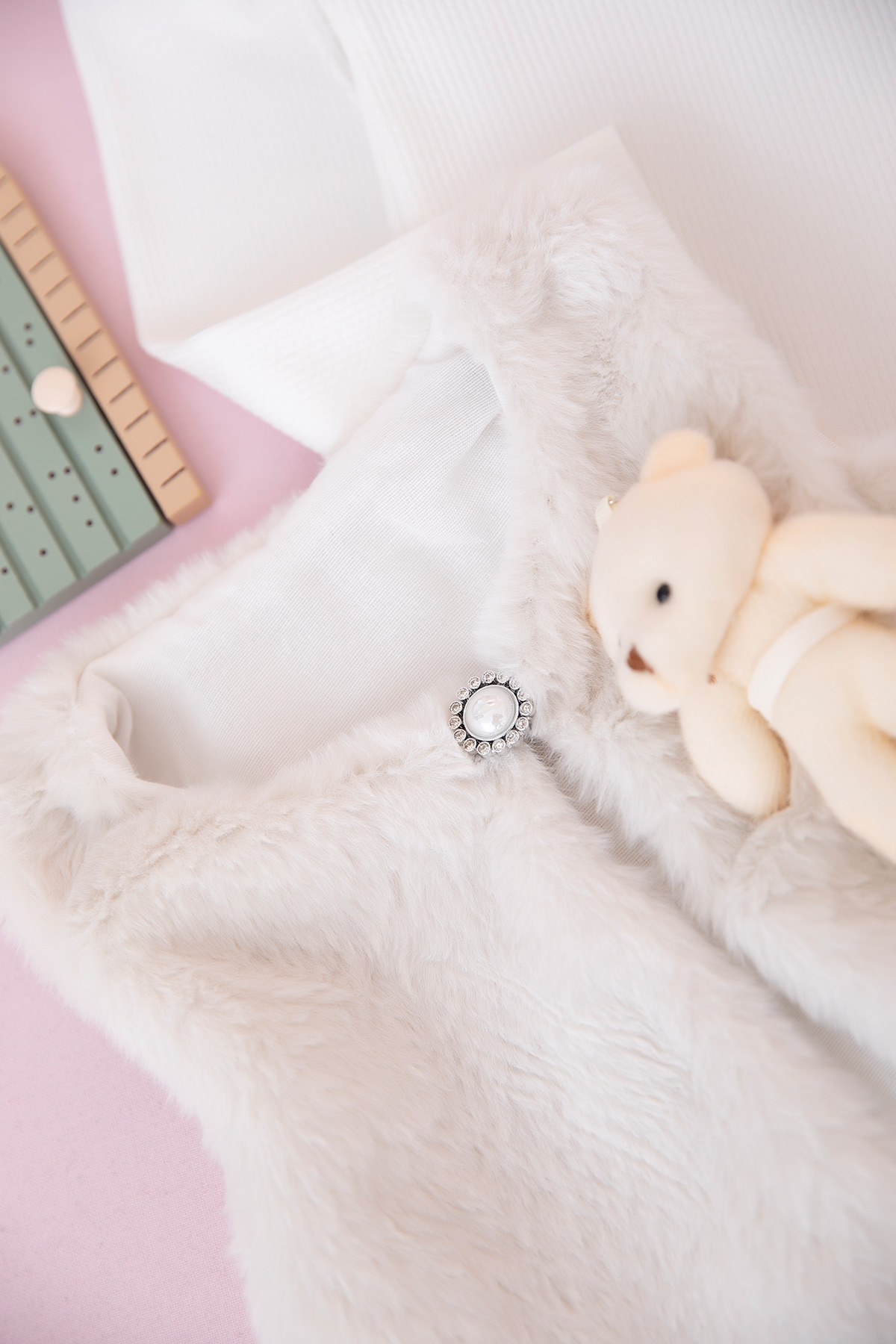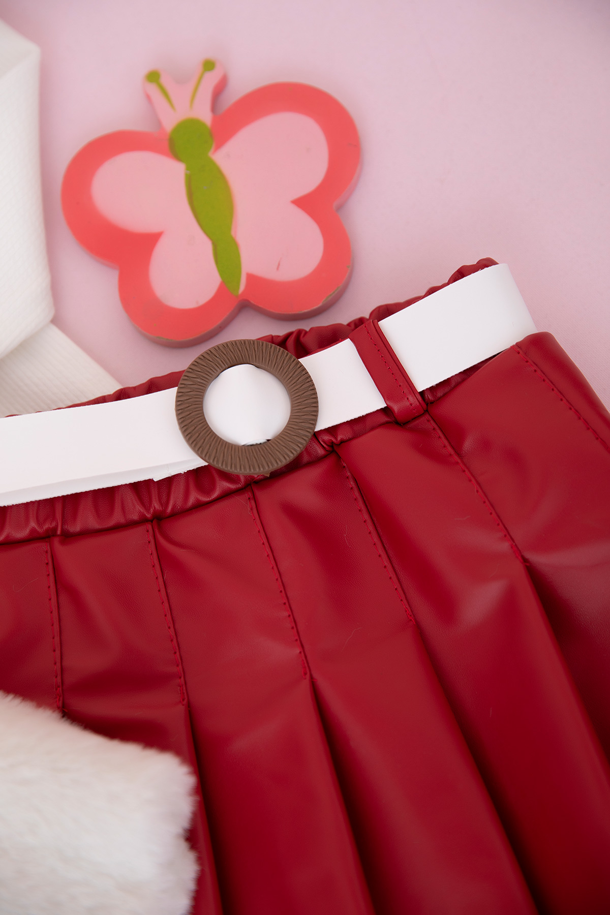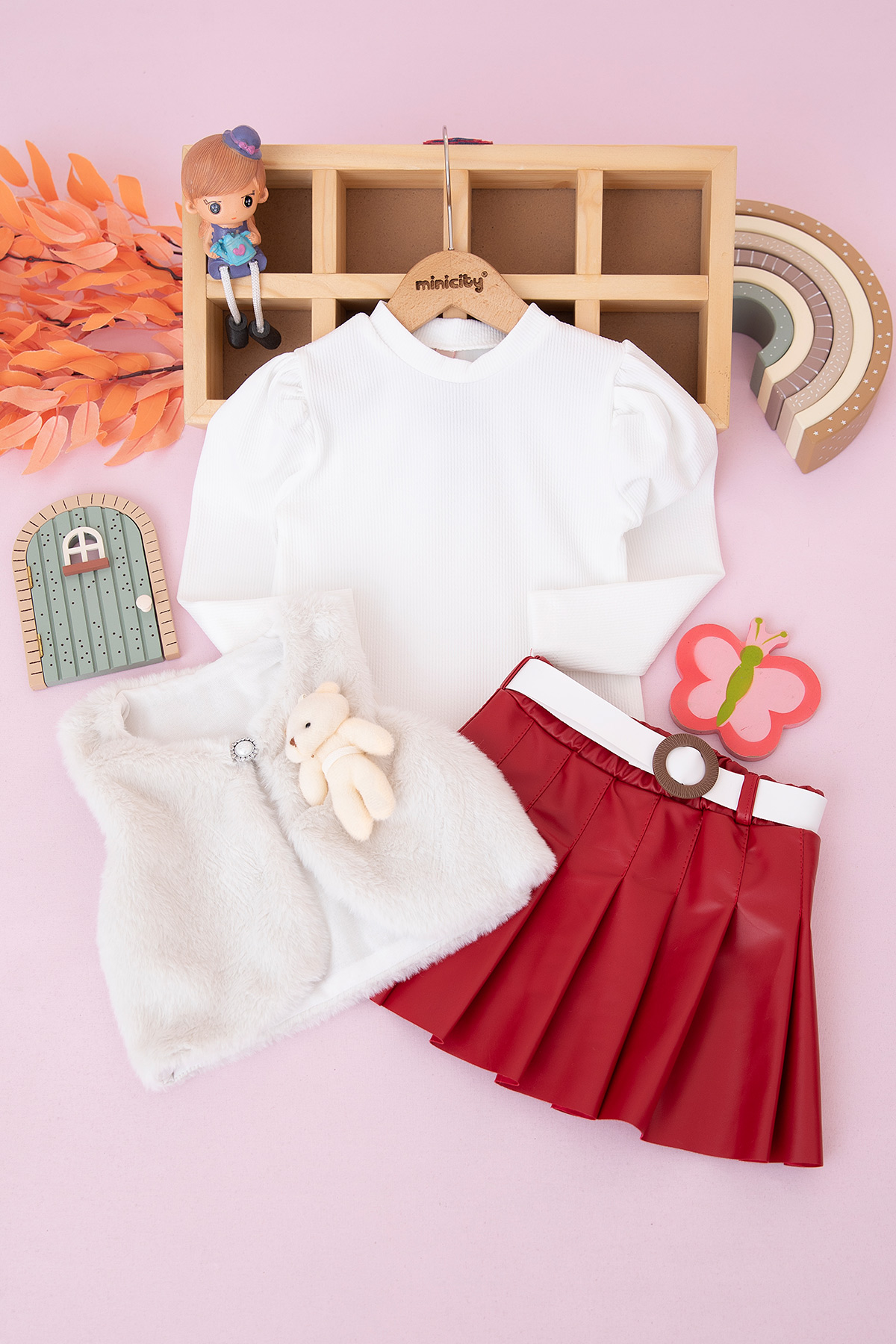 Kız Çocuk Ayılı Peluş Yelek Deri Etek Takım - 25072 (2-5 Yaş)