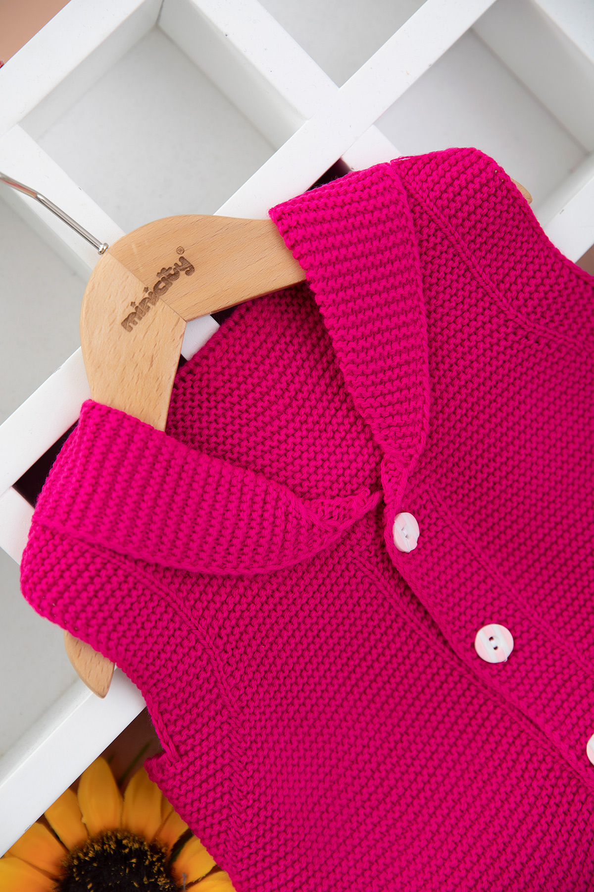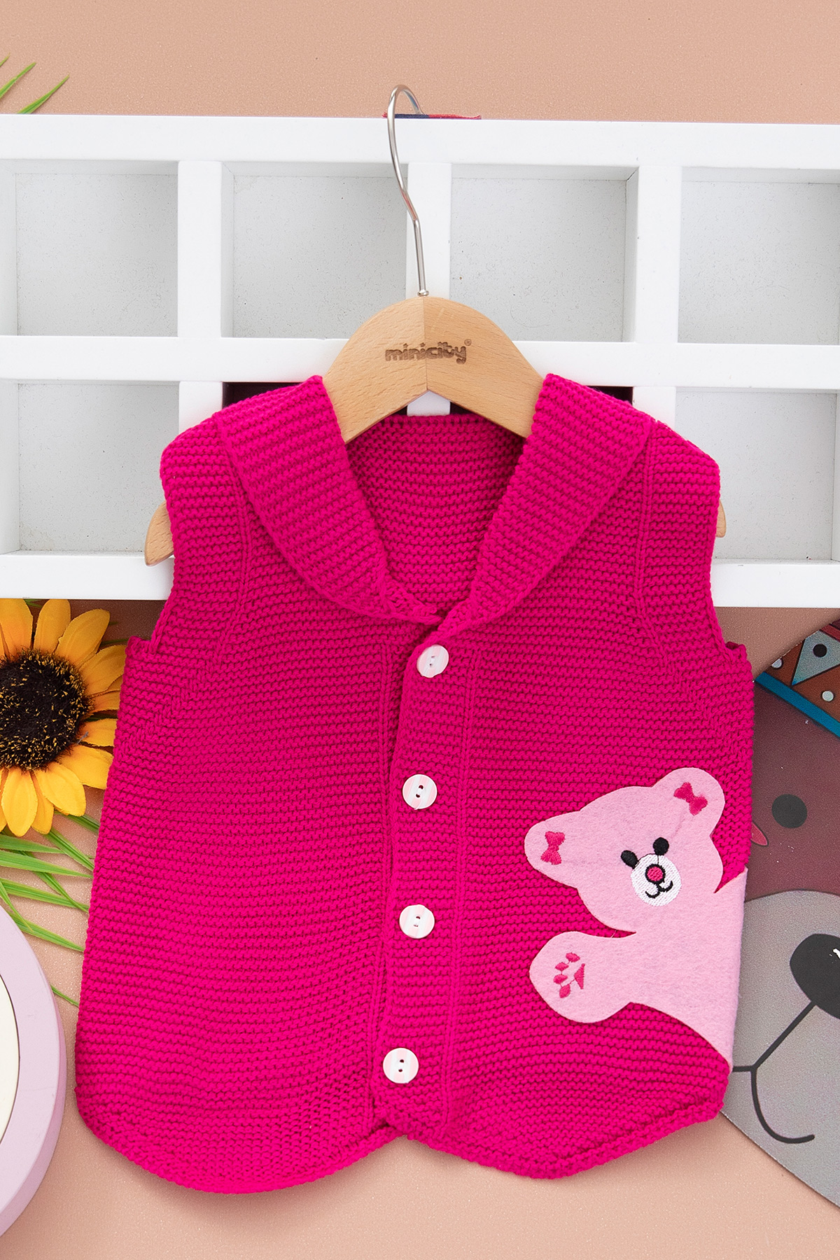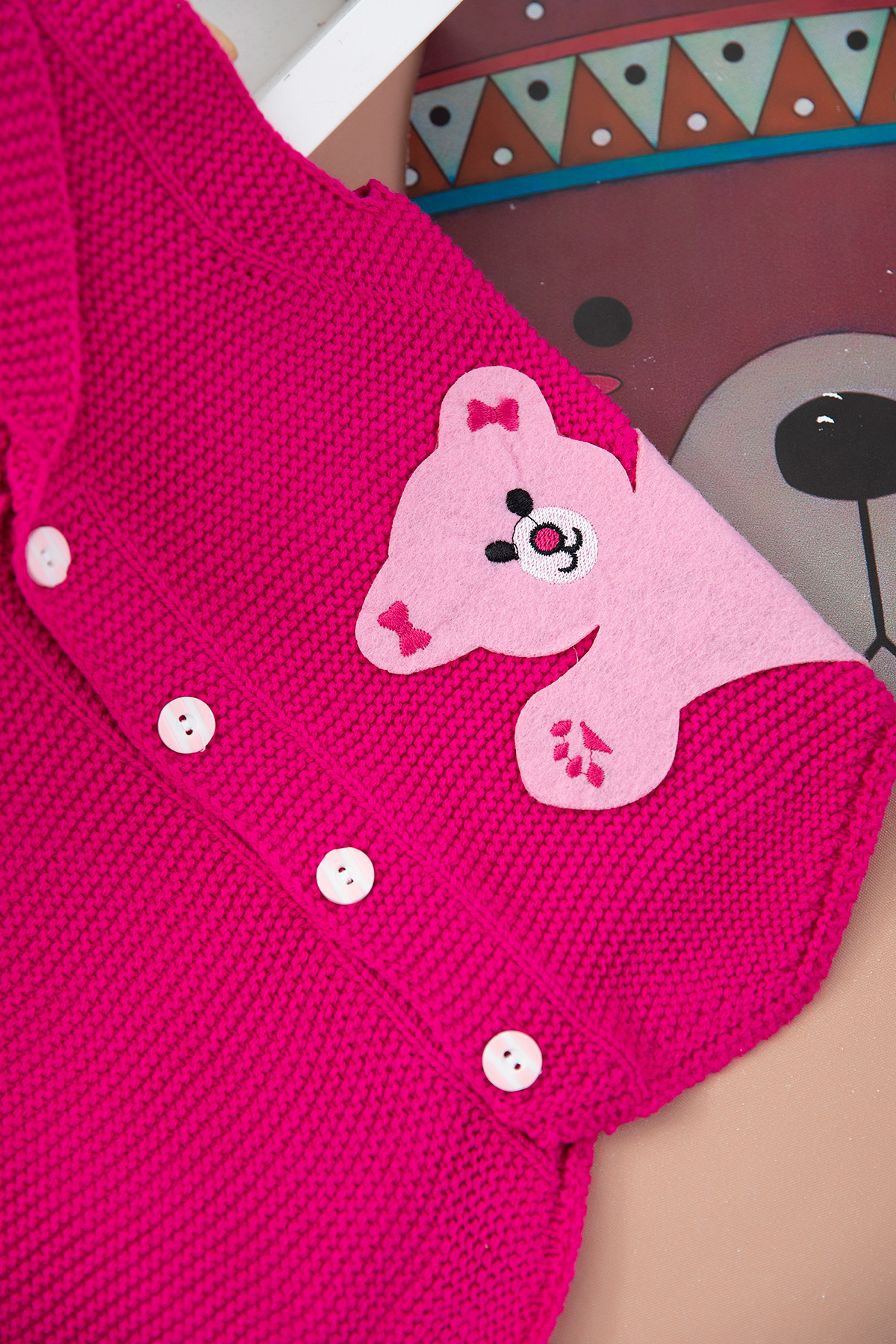 Kız Çocuk Ayılı Triko Ata Yeleği - 485 (1-5 Yaş)