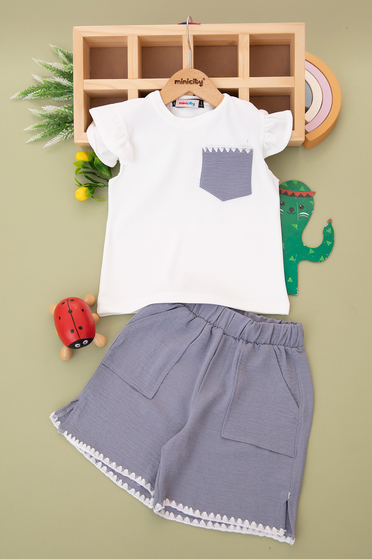 Kız Çocuk Ayrobin Şortlu Cepli Takım - 1019 (6-10 Yaş)