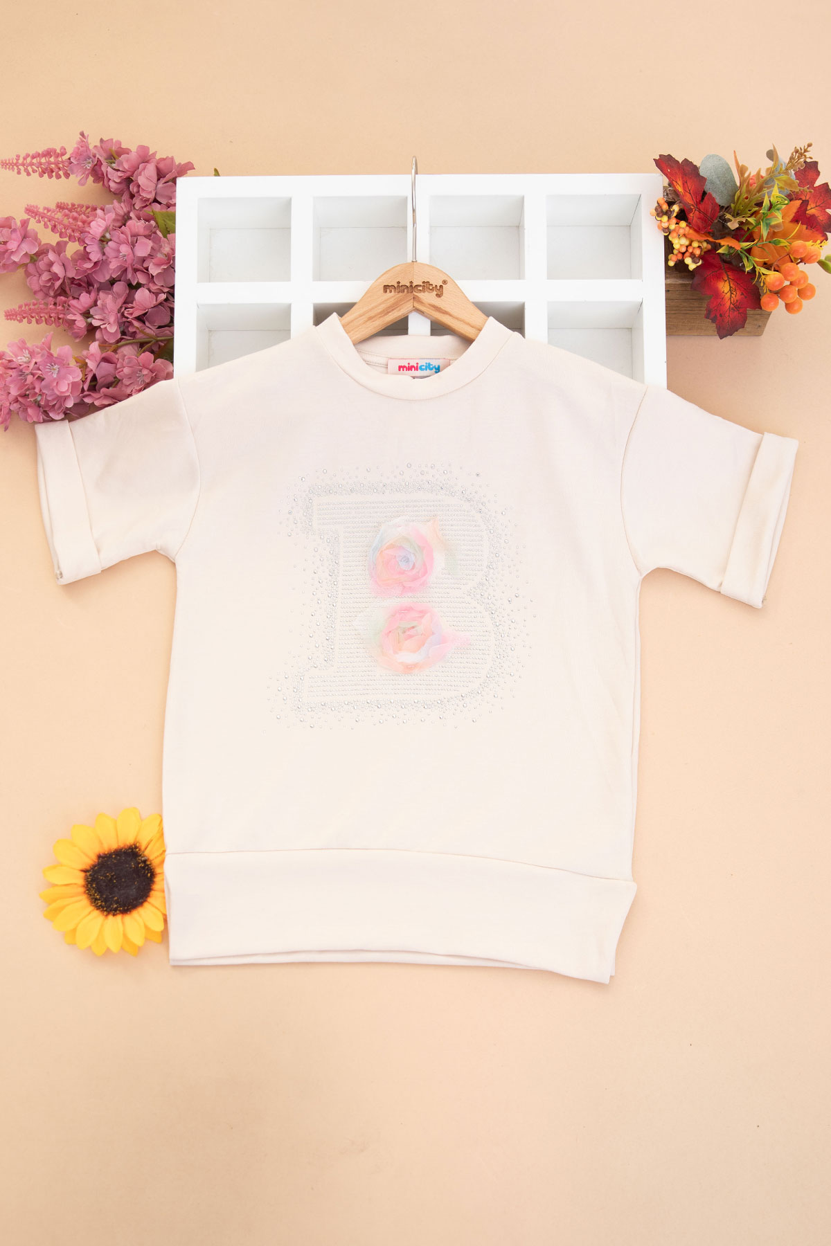 Kız Çocuk B Harf Taş Baskılı Tişört - 2020 (8-14 Yaş)